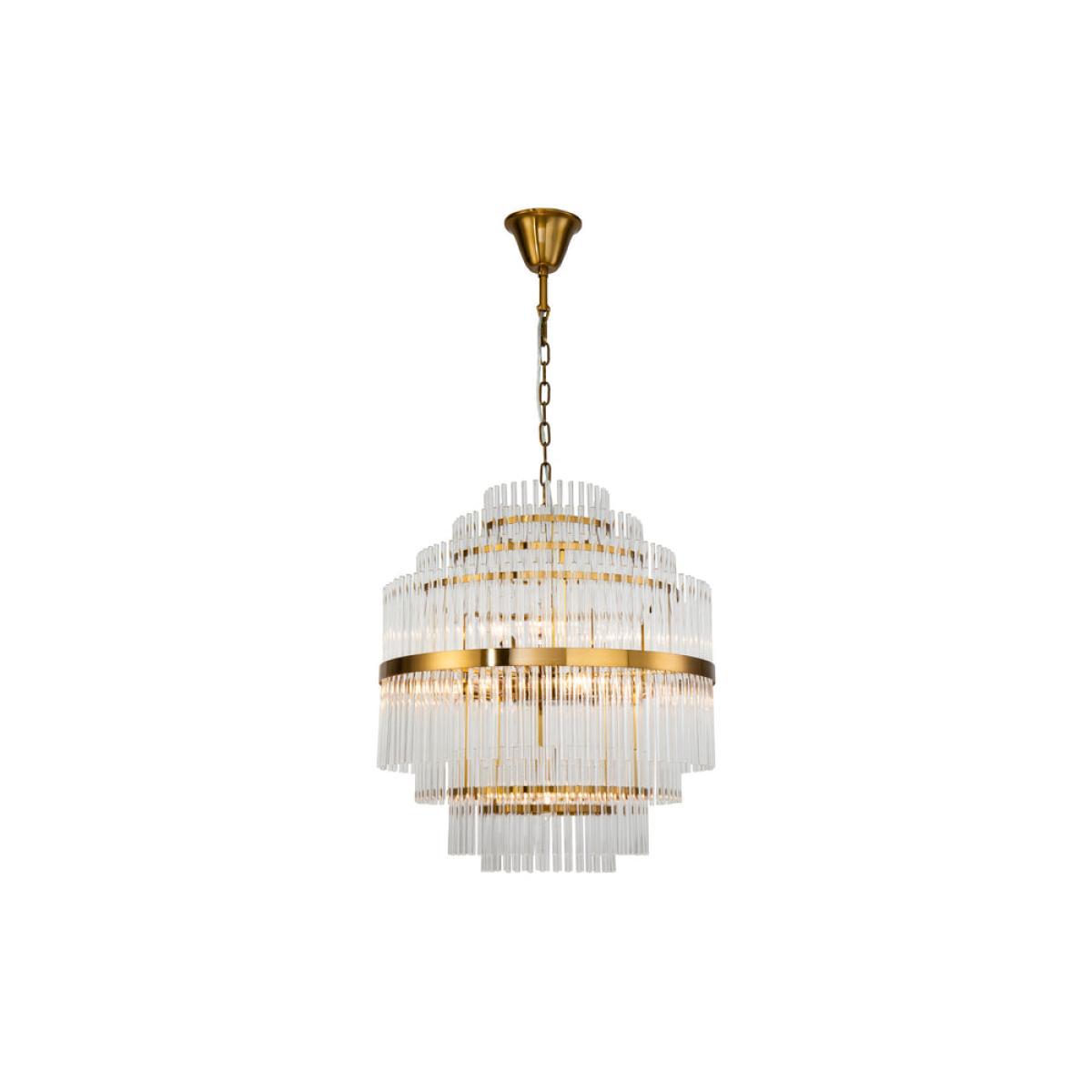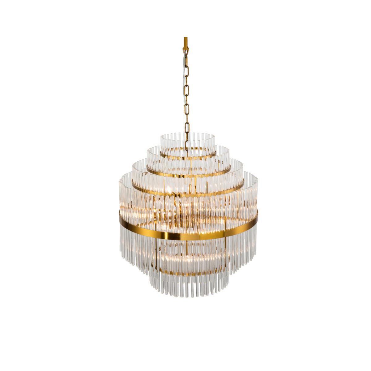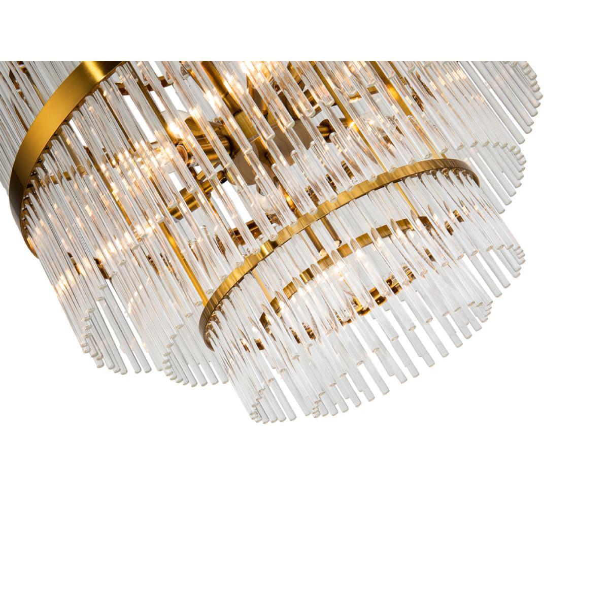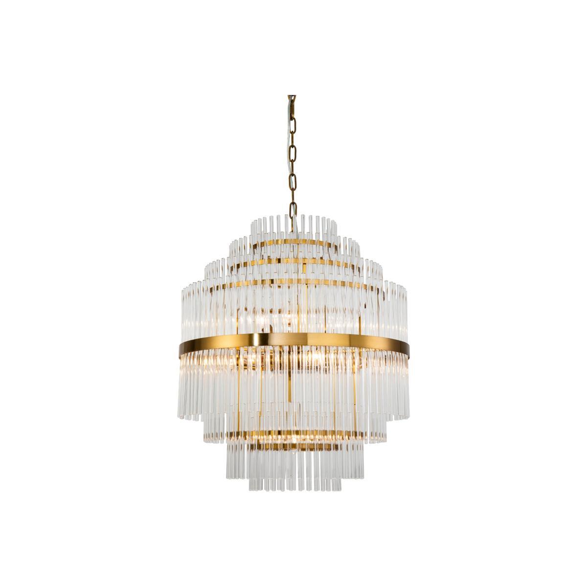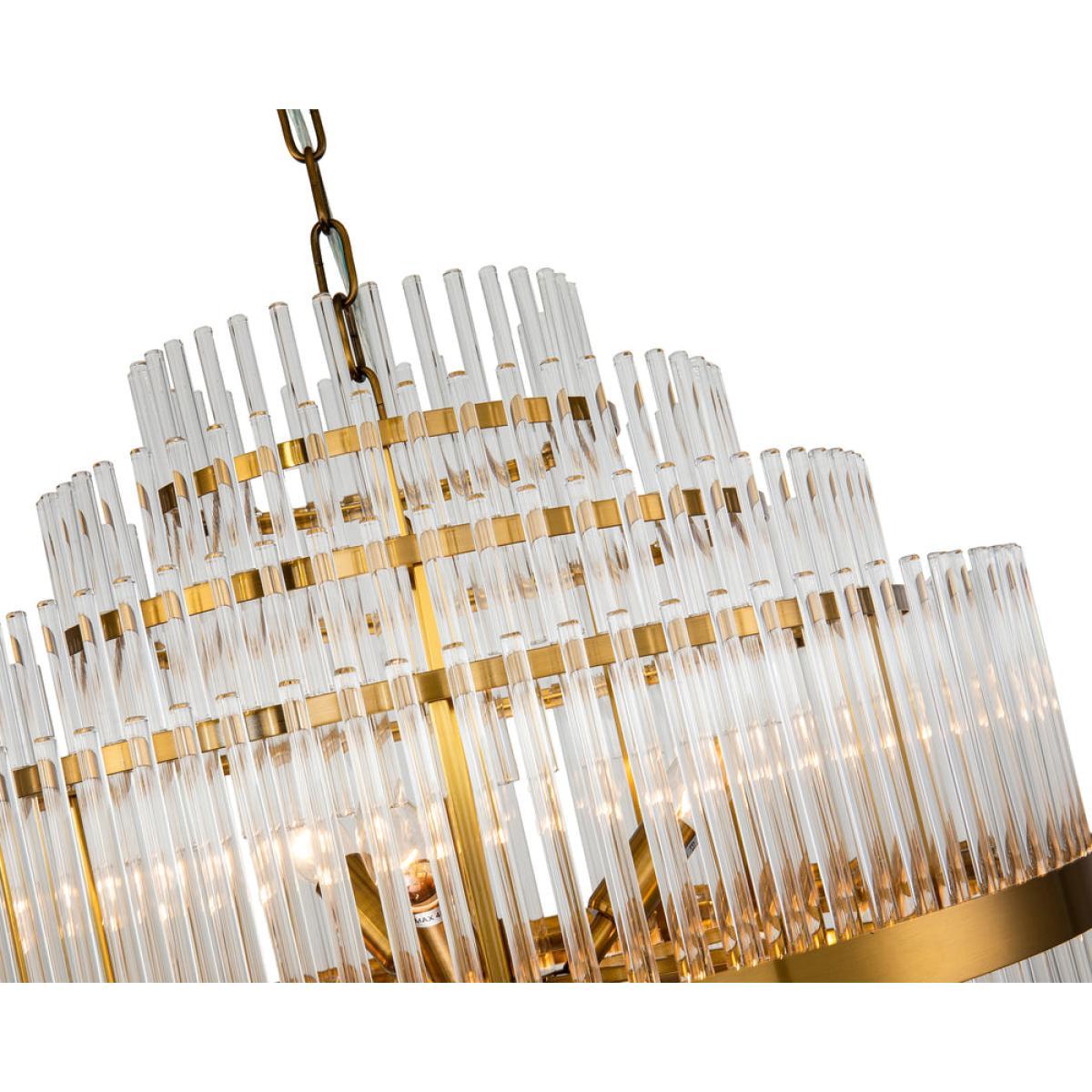 Comprising seven tiers of gorgeous clear glass rods and an antique brass finished frame, the Gem Pendant Lamp is a truly awe-inspiring addition. Each individually artisan assembled, the chandelier brings a beautifully bespoke feel and an exclusive sense of extravagance, making it perfect for palatial spaces or impressive entrance halls. (Light bulbs not included Requires 10 x E14, MAX 40. W. *Moot Trading Ltd is not a lender and acts only as an introducer. The credit product is provided by Klarna Bank AB (publ). Credit is only available to permanent UK residents aged 18 and over, subject to status. Terms and conditions apply. Please note that the following products are not regulated by the FCA: Pay in 30 days and Pay in 3 instalments. Read More.