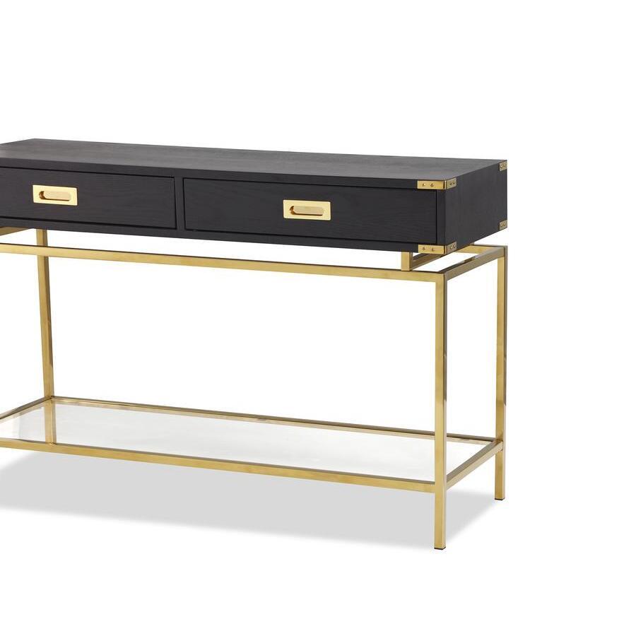 Black Ash Veneer Top. Polished Brass Details, Handles and Legs. Handles are 100% hand-made item in metal. Each piece has different small variations and hand made related finishes including small welding points at junctions and not being completely straight, square or flush. These are the characteristic of the hand-made item and it is not a defect. *Moot Trading Ltd is not a lender and acts only as an introducer. The credit product is provided by Klarna Bank AB (publ). Credit is only available to permanent UK residents aged 18 and over, subject to status. Terms and conditions apply. Please note that the following products are not regulated by the FCA: Pay in 30 days and Pay in 3 instalments. Read More.