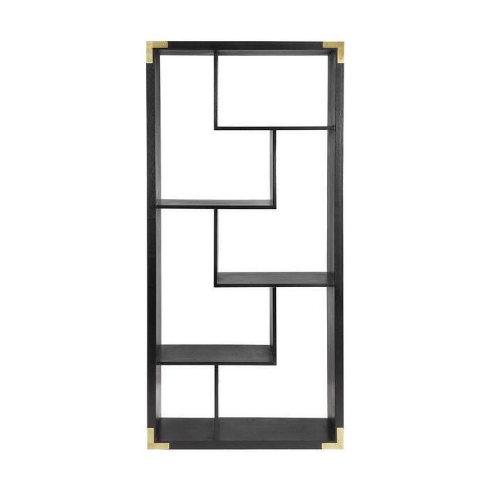 I love this shelving unit for its sleek, modern aesthetic combined with the luxe touch of polished brass accents. It works particularly well in contemporary or minimalist interiors, adding visual interest without feeling overwhelming. Practical styling tips include using it to display a curated selection of books, decorative objects, or plants to balance its geometric structure. Its open design also makes it ideal for creating a sense of space in smaller rooms or as a standout feature in living areas or home offices. To keep it looking its best, consider pairing it with other brass or black accents for a cohesive look.