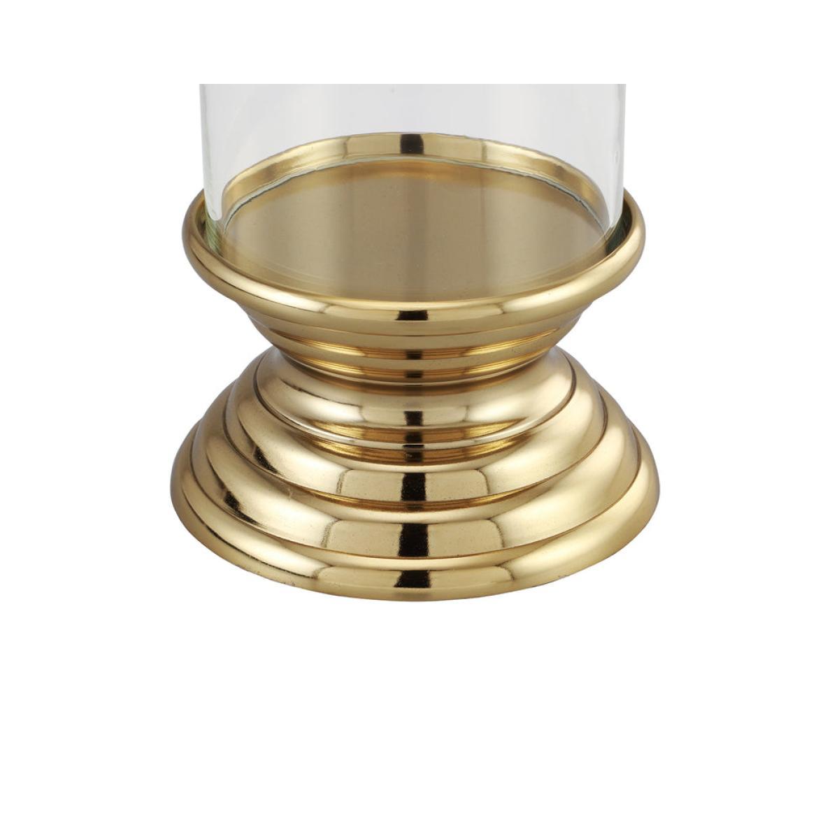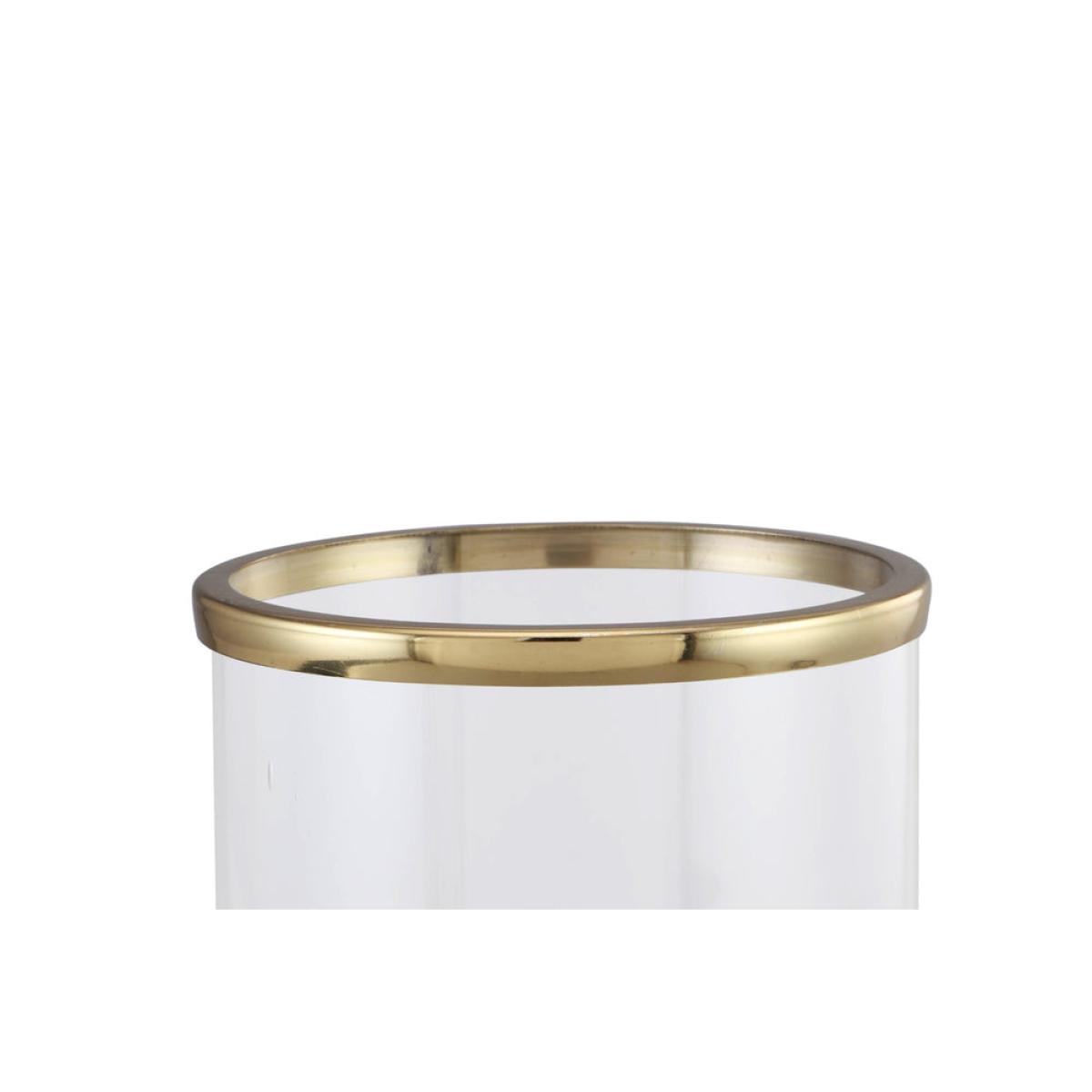 I love this hurricane for its sophisticated yet versatile look. The clear glass combined with the gold ring detail makes it a great statement piece that works well in both classic and contemporary interiors. It’s perfect for adding a touch of glamour to mantelpieces, console tables, or centrepieces when styled with candles of varying heights. Practical styling tips include pairing it with textured or coloured candles to create visual interest or using it in a layered vignette alongside books and decorative objects. Its neutral palette ensures it’s easy to incorporate into different colour schemes, making it a reliable choice for a versatile finishing touch.