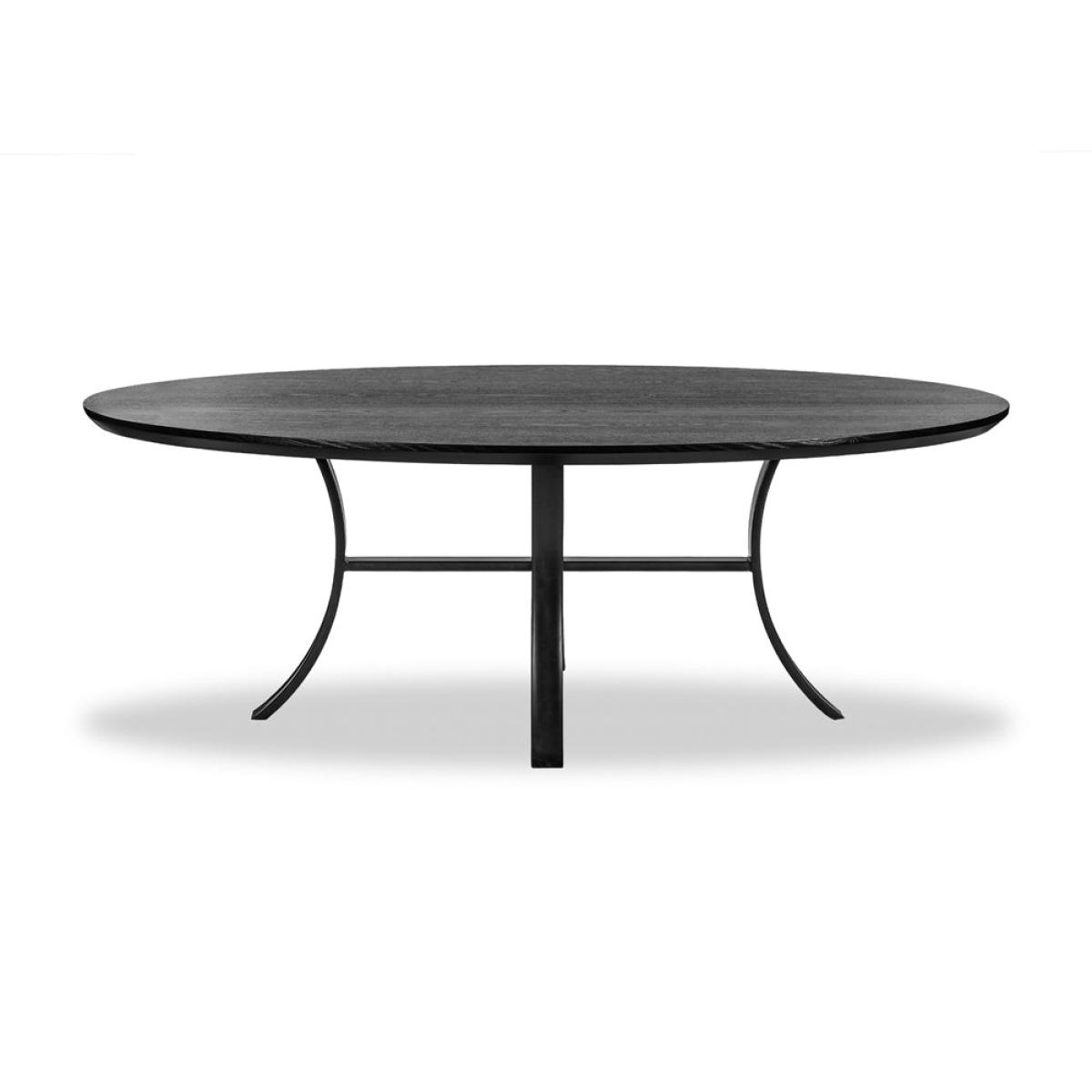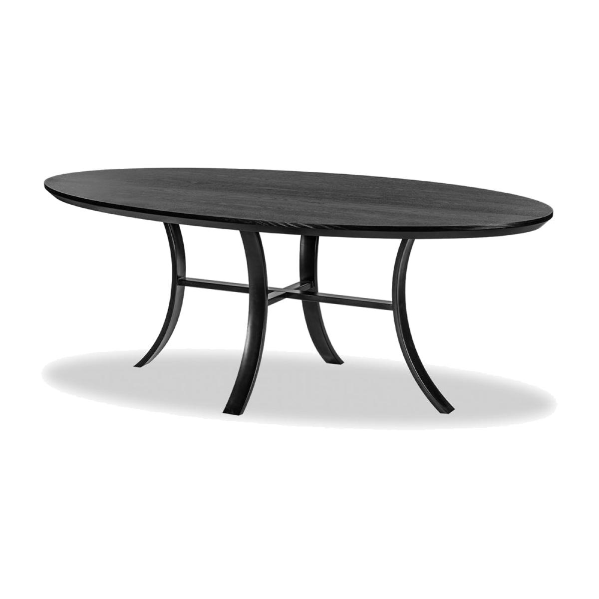 The Isola dining table is a lovely piece that is ideal for a home with a preference for monochrome or minimalist styling. It is a contemporary dining table in a black ash veneer finish. Oval in shape, its stylish curved legs are bound together by intersecting supports. This table is 210cm long and 76cm tall. It is ideal for family use and easy to clean thanks to sealed and rounded edges. It easily seats six people. The Liang & Eimil Isola dining table is large enough to accommodate a colourful centrepiece if desired and looks stunning when matched with a bright runner. Dimensions: W: 210 x D: 100 x H: 76 cm Materials: Ash Veneer Assembly Required:Yes Care Instructions:Wipe with a clean, soft, dry cloth. Do not use harsh abrasives or cleaners