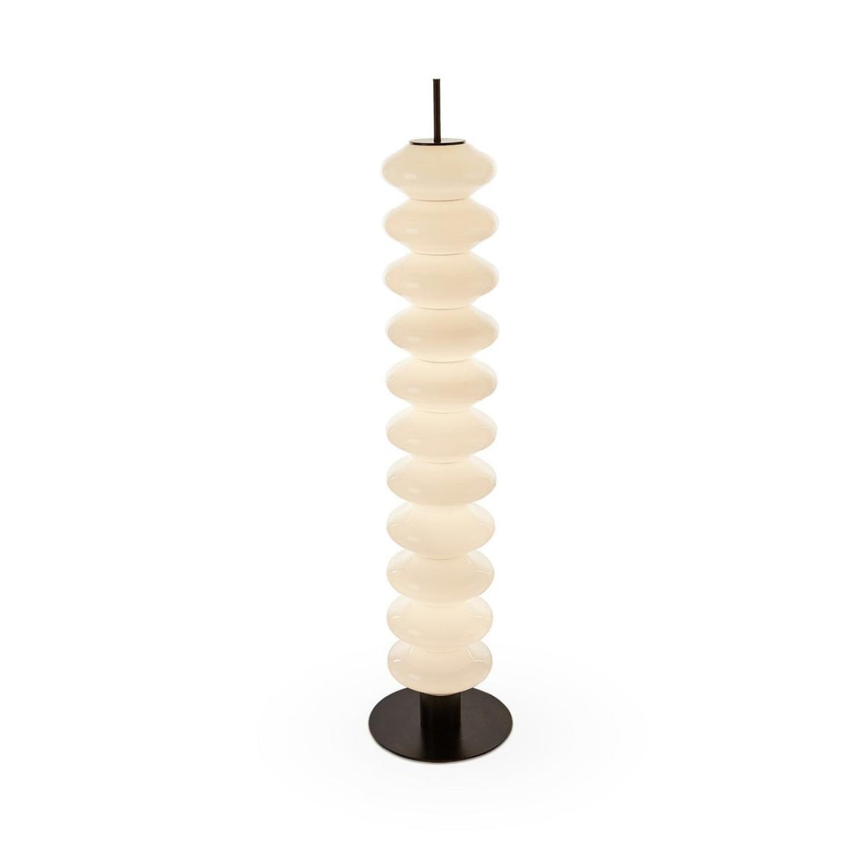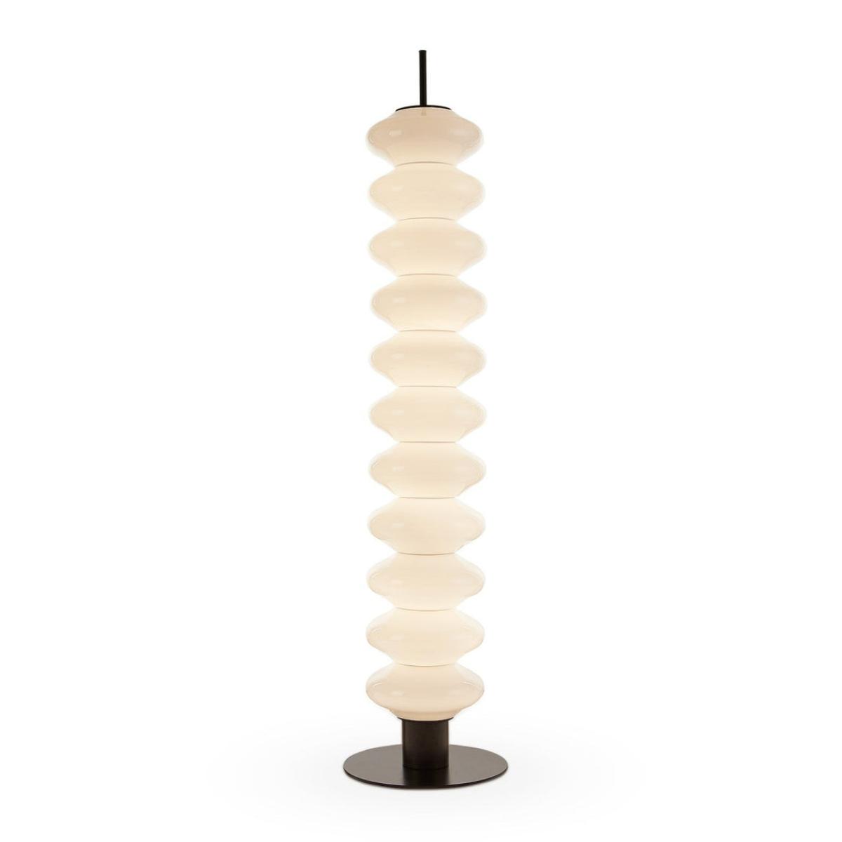In a symphony of elegance, the Jana Floor Lamp stands as an illuminating masterpiece, featuring 11 rounded bulbous discs in exquisite white glass seamlessly stacked on a sleek black iron base. The interplay of black and white elements, coupled with the awakening LED strip, casts a gentle and neutral glow, making it a versatile addition to residential sanctuaries and upscale hospitality projects alike. Designed for those who appreciate the finer things, the Jana transforms spaces into extraordinary havens, offering a captivating experience that harmoniously blends functionality and modern brilliance.