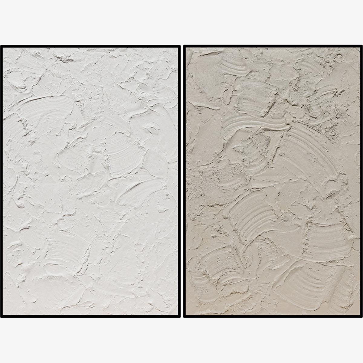 The use of white and cream in the Kaolin two piece set makes it ideal for rooms with neutral interiors. This work of art will blend in while bringing texture and depth with a hint of excitement to any interior design style. Provided in a set of two, it is ready for you to place into any interior and refresh your space. Features: Oil Paint On Canvas, Hand Painted with Black Wooden Frame