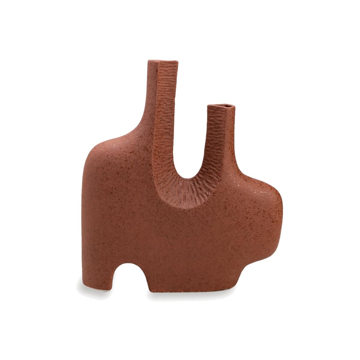 Earthy Red Ceramic Create an alluring aesthetic with the sculptural form of the Kelso Vase. Both organic and abstract, the Kelso Vases are an attractive, intriguing accessory. Fabulously finished in a reactive glaze that gives it a beautifully texture.