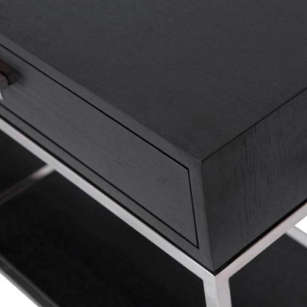 Available in both brass and stainless steel, there's a Levi bedside to suit your interior. Bring your boudoir to life, with the stunning Levi bedside table. Featuring a black ash veneer top and shelf, contrasting beautifully with a metal handle, frame and legs. Complete the look by positioning a table lamp on its surface with a frame or maybe even a bedside candle. Designed with both functionality and stylish design in mind, Levi is practical with its pull out drawer and lower storage shelf. *Moot Trading Ltd is not a lender and acts only as an introducer. The credit product is provided by Klarna Bank AB (publ). Credit is only available to permanent UK residents aged 18 and over, subject to status. Terms and conditions apply. Please note that the following products are not regulated by the FCA: Pay in 30 days and Pay in 3 instalments. Read More.