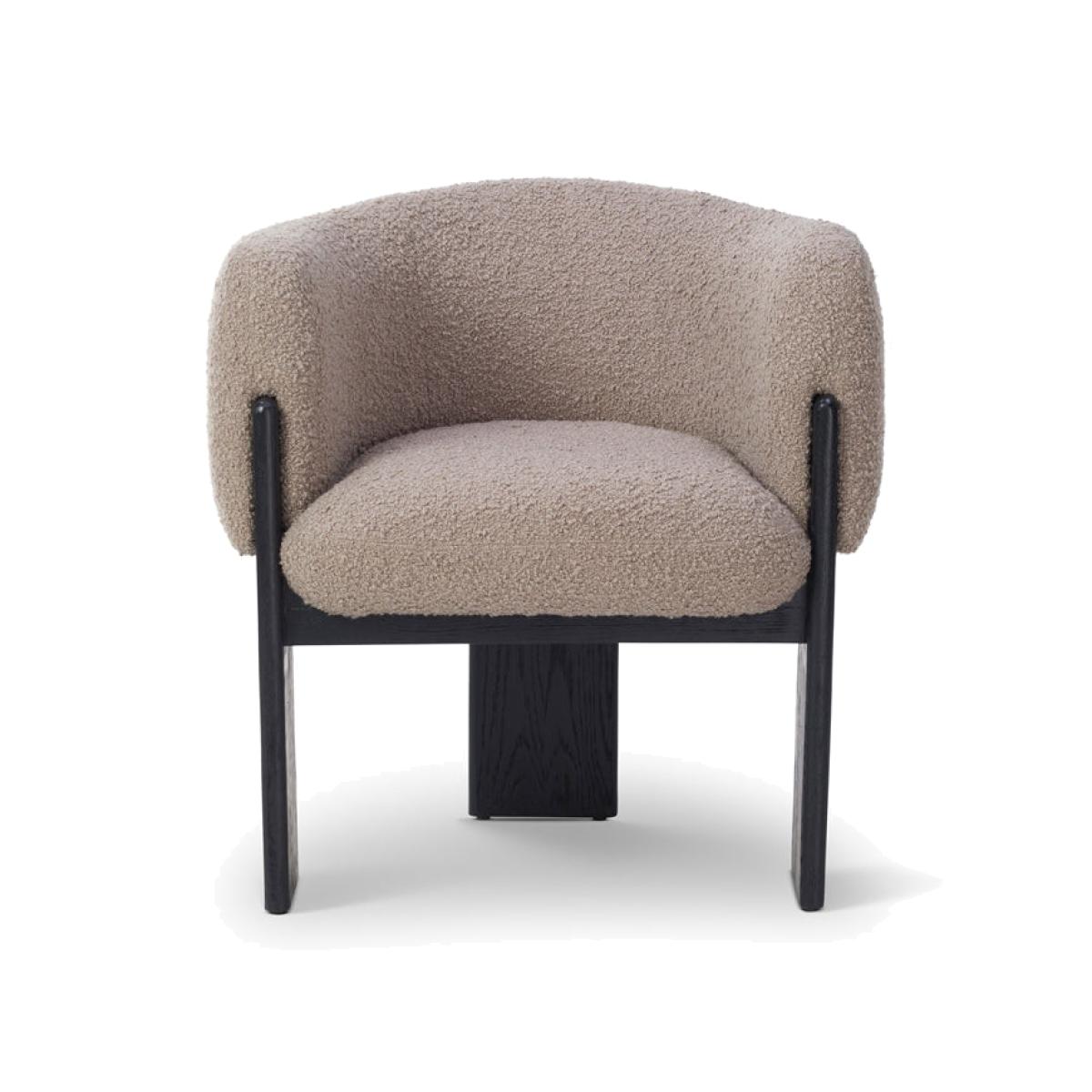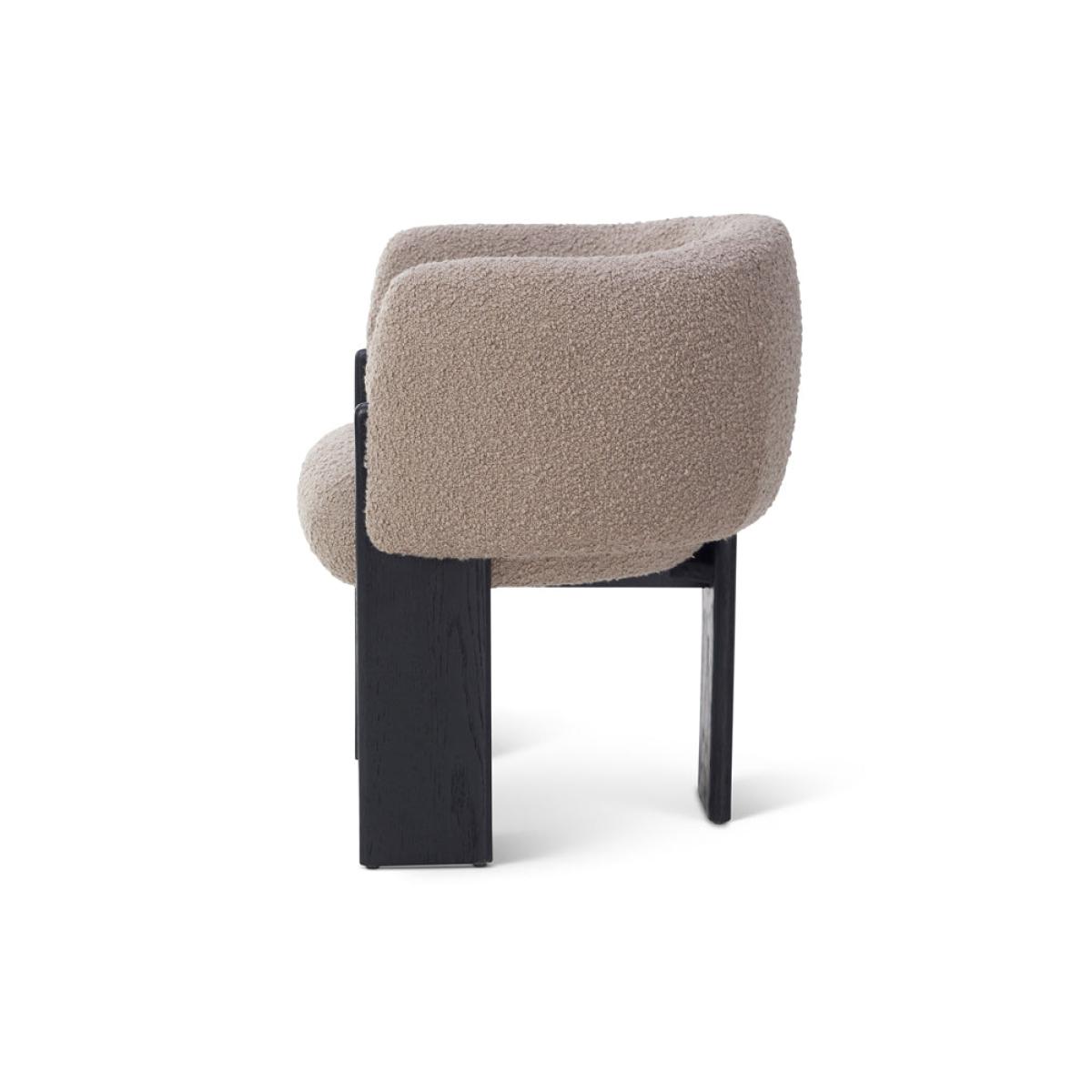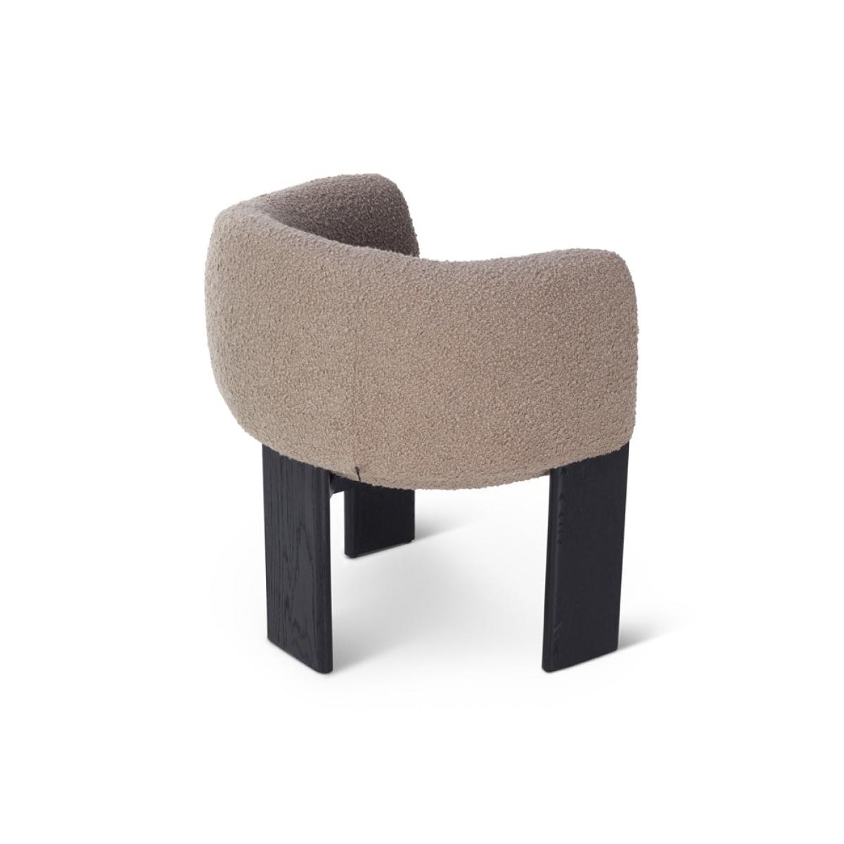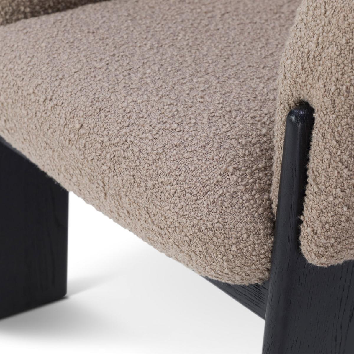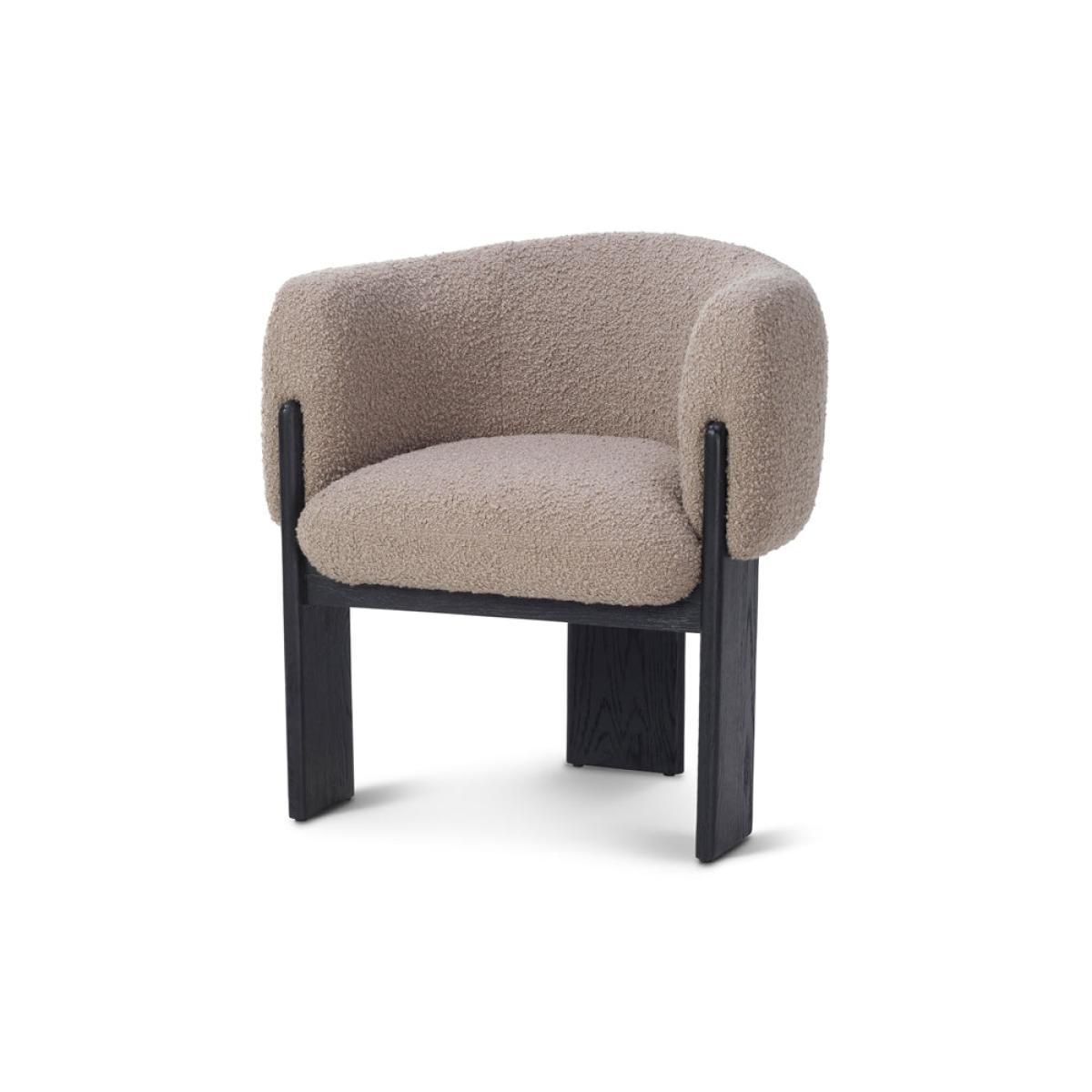 Indulge in the perfect blend of comfort and style with the Lucca Armchair. Adorned in rich espresso-tone bouclé upholstery, this exceptional piece is elevated by stunning matt black solid oak legs. With its unique three-legged design, the Lucca Armchair exudes a distinct modern charm while ensuring stability. Relaxation takes on a new meaning as the enveloping form of the armchair cradles your body, offering a truly comfortable seating experience. The espresso-tone bouclé upholstery adds a touch of luxury, while the matt black solid oak legs infuse a modern sensibility that complements various interior aesthetics. Elevate your living space with the unrivaled comfort and elegance of the Lucca Armchair. Whether as a standalone centerpiece or a tasteful addition to your decor, it promises to be the ultimate haven for relaxation. Key Features: Beverly Bouclé Espresso Grey Upholstery: Immerse yourself in plush comfort with the luxurious bouclé fabric that graces the Elis Armchair, creating an inviting and stylish ambience. Matt Black Solid Oak Legs:The striking black oak legs not only enhance the chair's visual appeal but also ensure longevity and stability for years to come. Enveloping Comfort: Embrace the armchair's form-fitting design for an unparalleled seating experience that cocoons your body in relaxation.