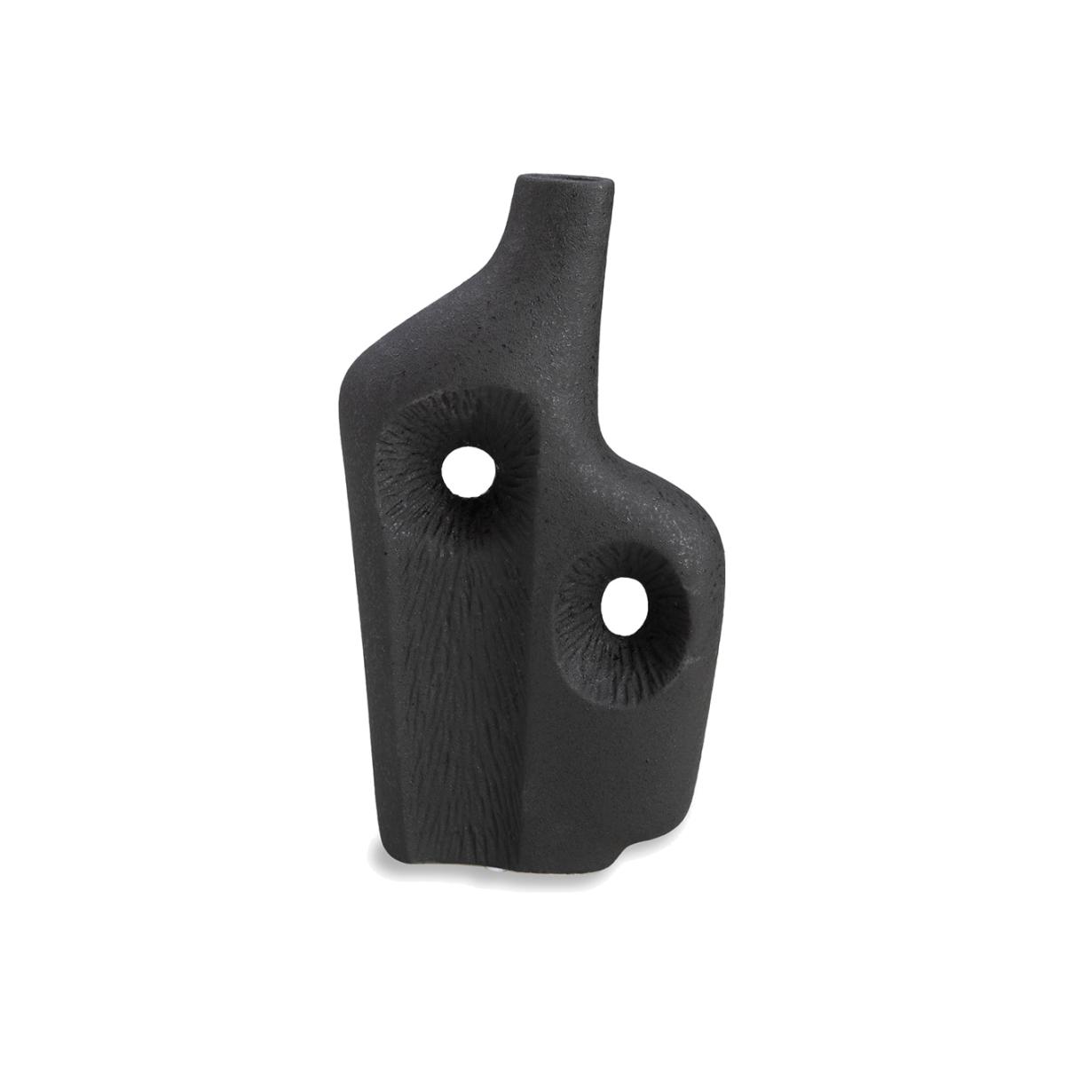 With a striking, brutalist design the Lukin vase from Liang and Eimil is a sophisticated and eye-catching piece that makes a perfect statement of modern style values. Its bold design of rocky curv. View More. With a striking, brutalist design the Lukin vase from Liang and Eimil is a sophisticated and eye-catching piece that makes a perfect statement of modern style values. Its bold design of rocky curves, interesting shapes and intriguing textures can add panache to desks, bookshelves, sideboards or dressers. It is also a perfectly good vase for either a prize bloom or some of our faux greenery. The two central recesses give the appearance of eyes, bringing an aura of tribalism and primitivism to the piece, so it will also look good amongst other tribal styled items. It is 42cm high, 23cm across and about 9cm wide.
