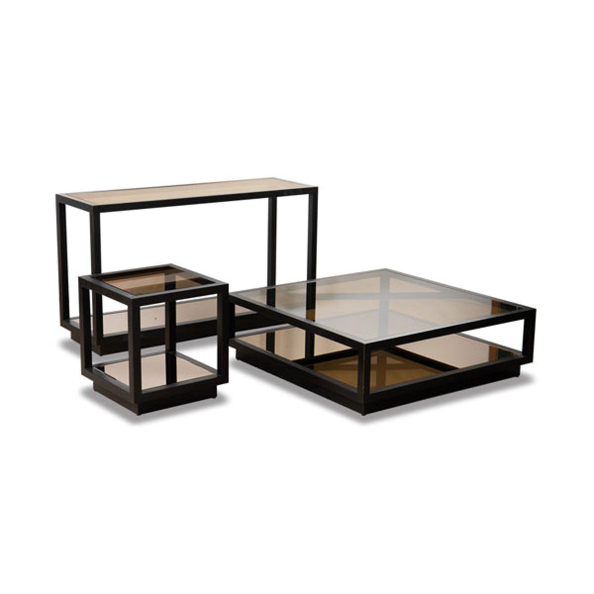 Rubbed Bronze Finish Metal, Bronze tinted Glass, Bevelled Mirror Undertier Joyously geometric, the Mali tables celebrate the subtleties of rich bronze and Cubist geometry. The mirrored undertiers with subtly bevelled edges create light and space in your interior. Tempered bronzed glass tops add warmth, sophistication and modernity in the same breath. The Mali collections form and finish makes it a perfect match for subtle contemporary or updated classic alike. *Moot Trading Ltd is not a lender and acts only as an introducer. The credit product is provided by Klarna Bank AB (publ). Credit is only available to permanent UK residents aged 18 and over, subject to status. Terms and conditions apply. Please note that the following products are not regulated by the FCA: Pay in 30 days and Pay in 3 instalments. Read More.