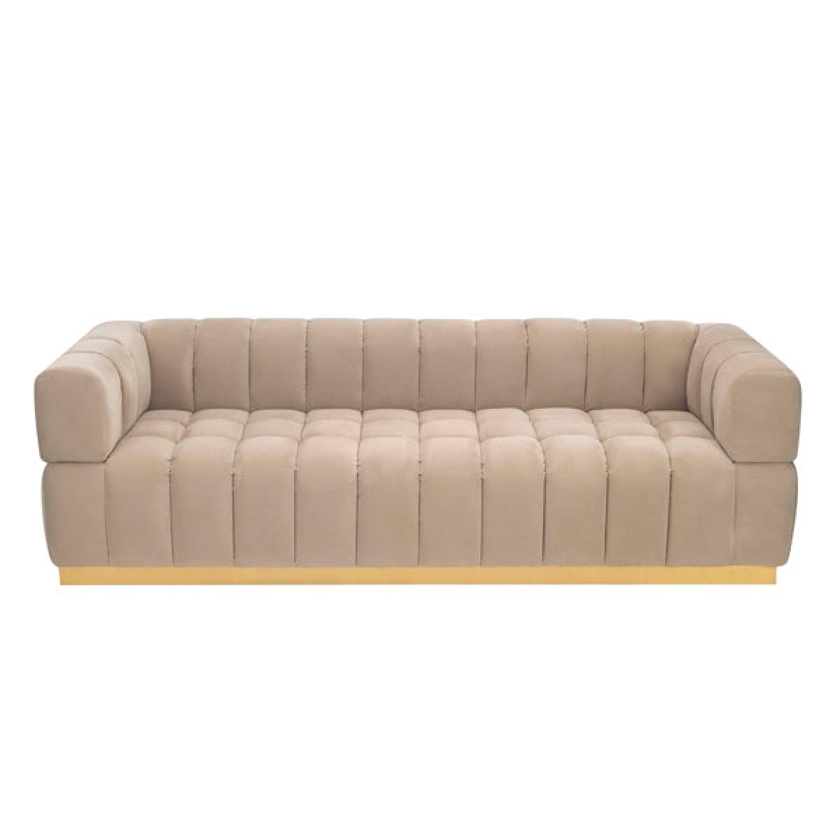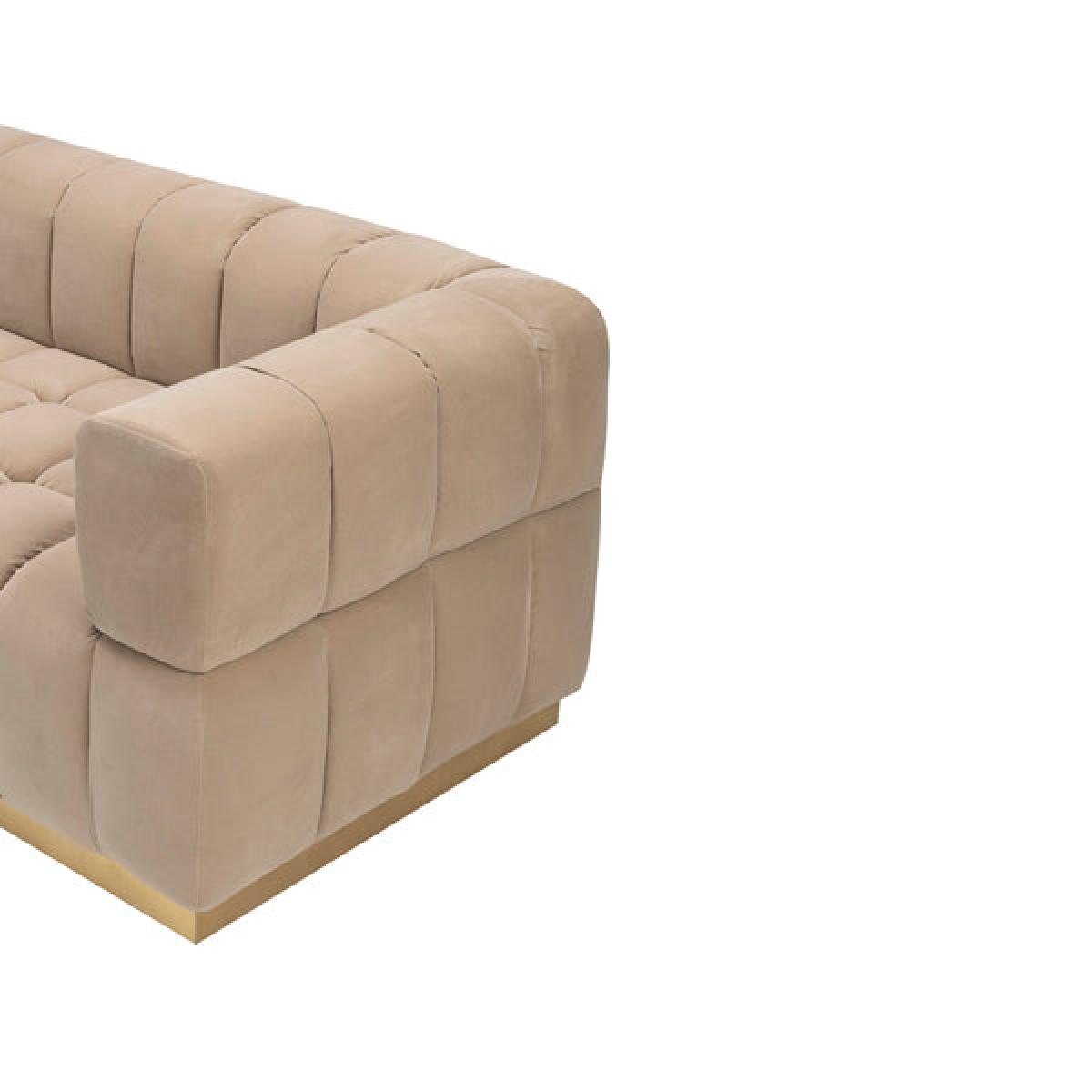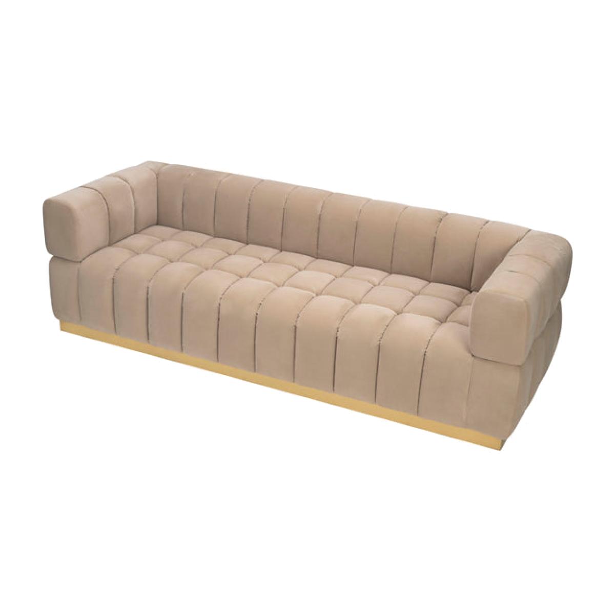 Kick back into sumptuous comfort and luxury as you settle into the Liang & Eimil Marat Toscana Latte Sofa from Olivia's. This stylish sofa is a perfectly balanced combination of straight-edged lines and plush padding, perfect for providing a dash of opulence in any room. With tufted velvet upholstery and artisan channelled touches, the sofa shines with its brushed gold metal base for a surprising finish and a luxurious accent that will naturally catch the eye. The Liang & Eimil Marat Toscana Latte Sofa measures W: 230 x D: 89 x H: 73 cm and will look wonderful in any contemporary interior. Dimensions: W: 230 x D: 89 x H: 73 cm