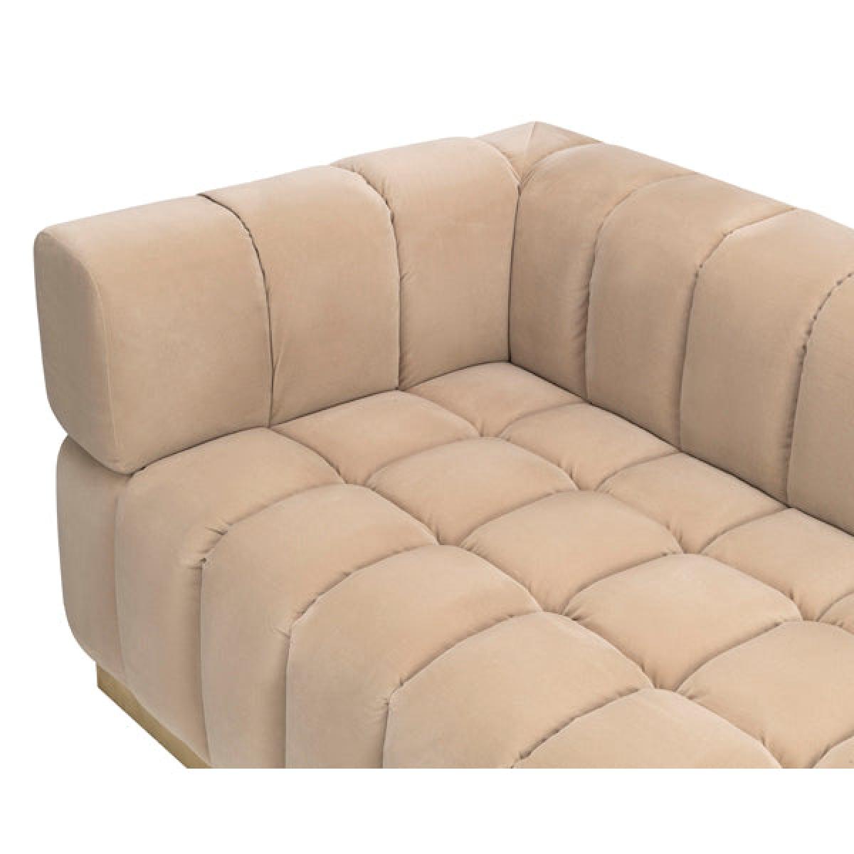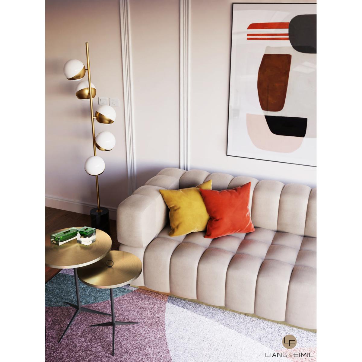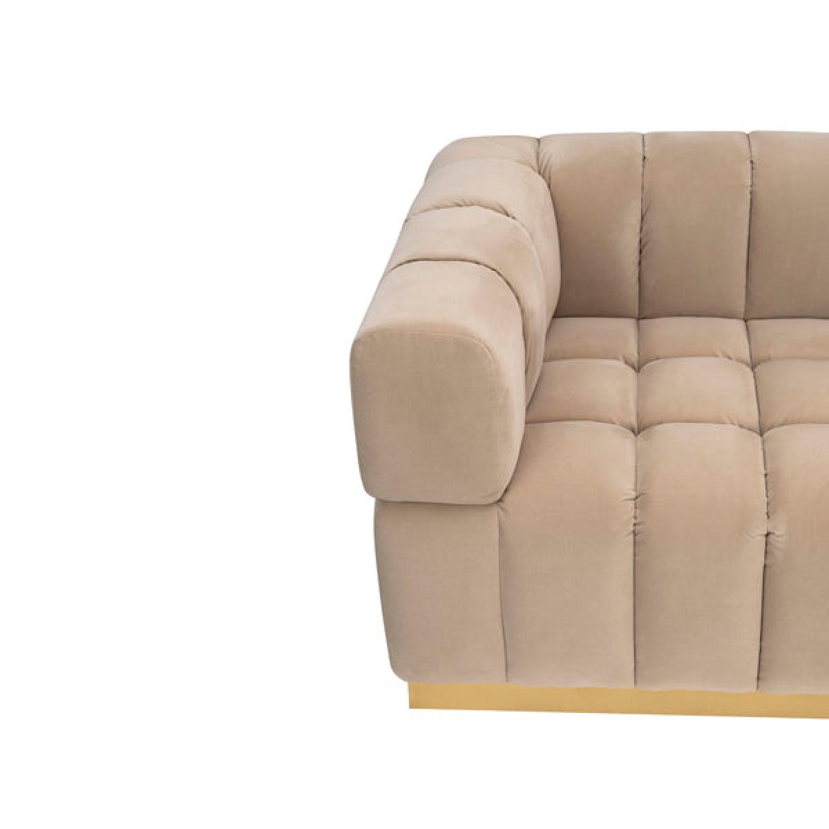 Kick back into sumptuous comfort and luxury as you settle into the Liang & Eimil Marat Toscana Latte Sofa from Olivia's. This stylish sofa is a perfectly balanced combination of straight-edged lines and plush padding, perfect for providing a dash of opulence in any room. With tufted velvet upholstery and artisan channelled touches, the sofa shines with its brushed gold metal base for a surprising finish and a luxurious accent that will naturally catch the eye. The Liang & Eimil Marat Toscana Latte Sofa measures W: 230 x D: 89 x H: 73 cm and will look wonderful in any contemporary interior. Dimensions: W: 230 x D: 89 x H: 73 cm