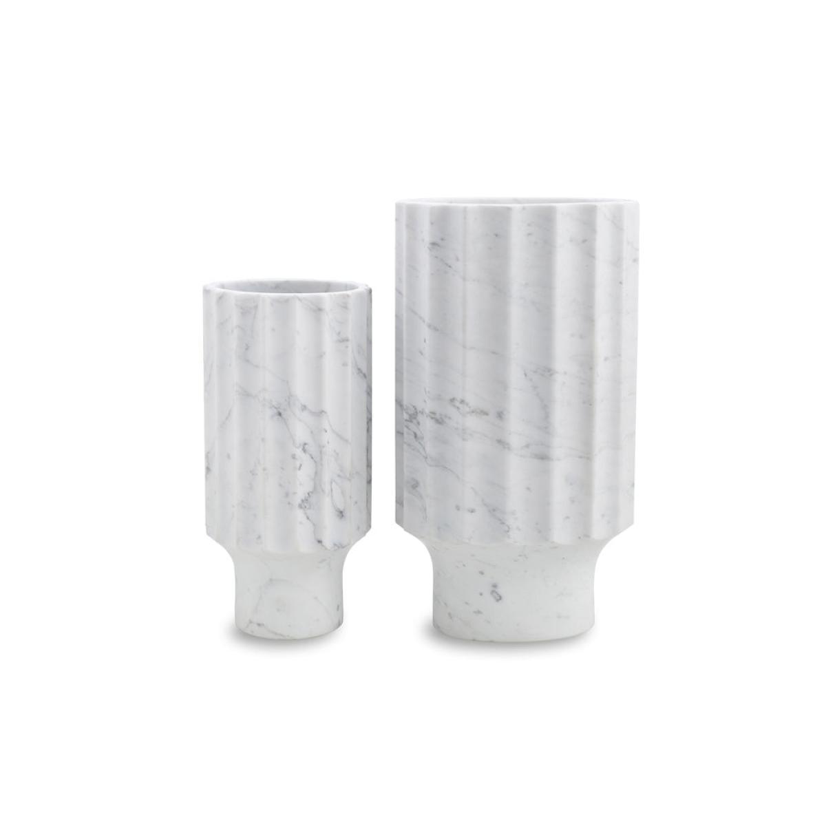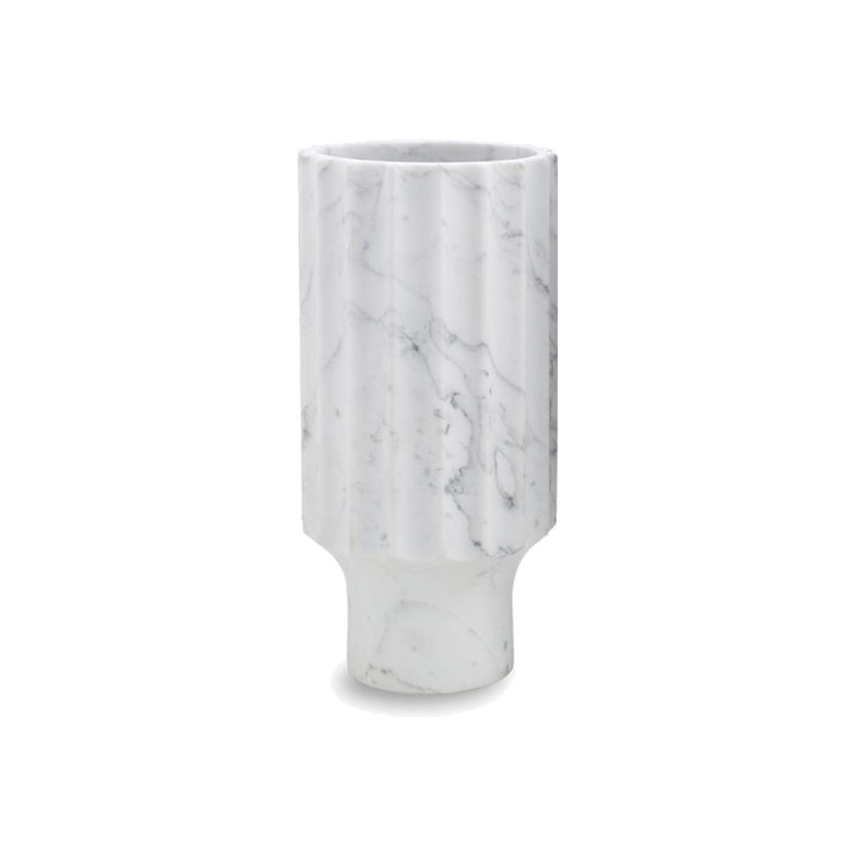 Of all the materials available to the interior designer, including wood of all descriptions, natural metals, alloys, glass, ceramics and earthenware, marble seems somehow timeless and elemental. From huge table tops to vast columns, its properties are powerful and majestic. The Marmo vase from Liang & Eimil contains all of that quality in a form that brings a formal yet intimate elegance to any table or display space. With its tapered base, crisp fluting and soft natural grey and black veining, this small but striking marble creation packs an aesthetic punch. It's available in two sizes, making a charming mother and child pair. *Moot Trading Ltd is not a lender and acts only as an introducer. The credit product is provided by Klarna Bank AB (publ). Credit is only available to permanent UK residents aged 18 and over, subject to status. Terms and conditions apply. Please note that the following products are not regulated by the FCA: Pay in 30 days and Pay in 3 instalments. Read More.