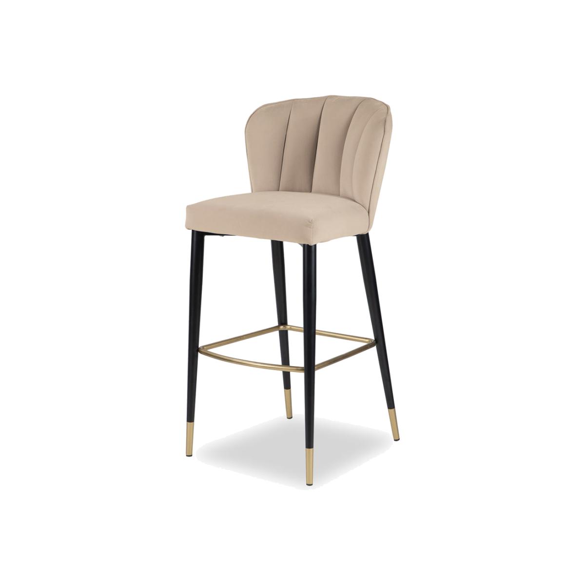 With a chic neutral tone and luxe golden accents, the Liang And Eimil Maya Bar Stool Kaster Mushroom makes a sophisticated and timeless choice. This delightful bar stool makes for a comfortable di. View More. With a chic neutral tone and luxe golden accents, the Liang And Eimil Maya Bar Stool Kaster Mushroom makes a sophisticated and timeless choice. This delightful bar stool makes for a comfortable dining experience thanks to its plush upholstered seat with a statement back. The slim tapered legs with opulent golden tips add a further touch of elegance, ensuring that this stylish bar stool will attract plenty of compliments. This contemporary and versatile bar stool is equally at home when paired with a smart breakfast bar or kitchen island as it is when used with a glamorous home bar setting.