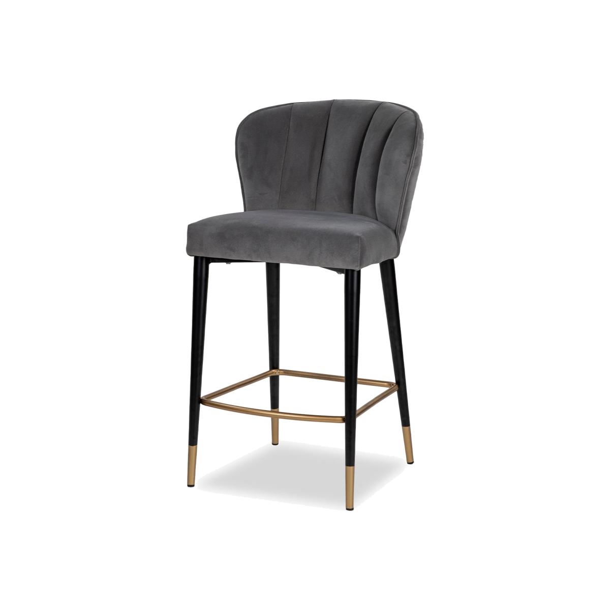 Kaster Anchor Grey Velvet, Matt Black Steel Legs with Gold finish Feet & Footrest Ensure comfort in your everyday dining with the flawless Maya Bar Chair. Its characterful upholstery is accentuated by clean black tapered legs, finished with gold cappings for a dash of interest. With an armless design, this bar stool plays with structure in a timelessly comfortable way.