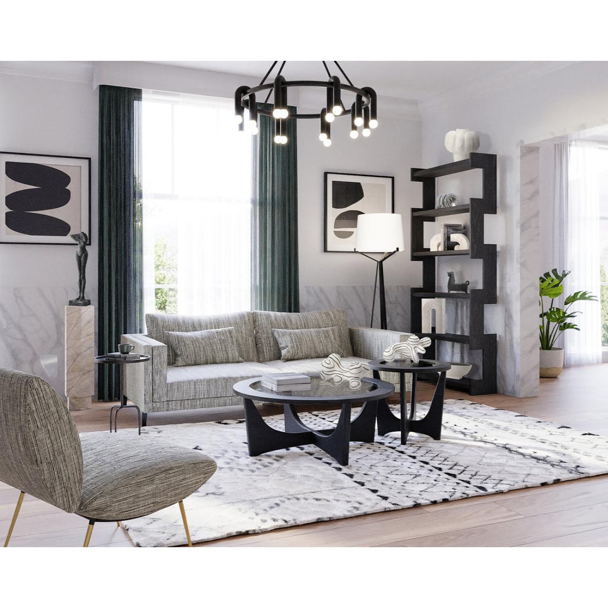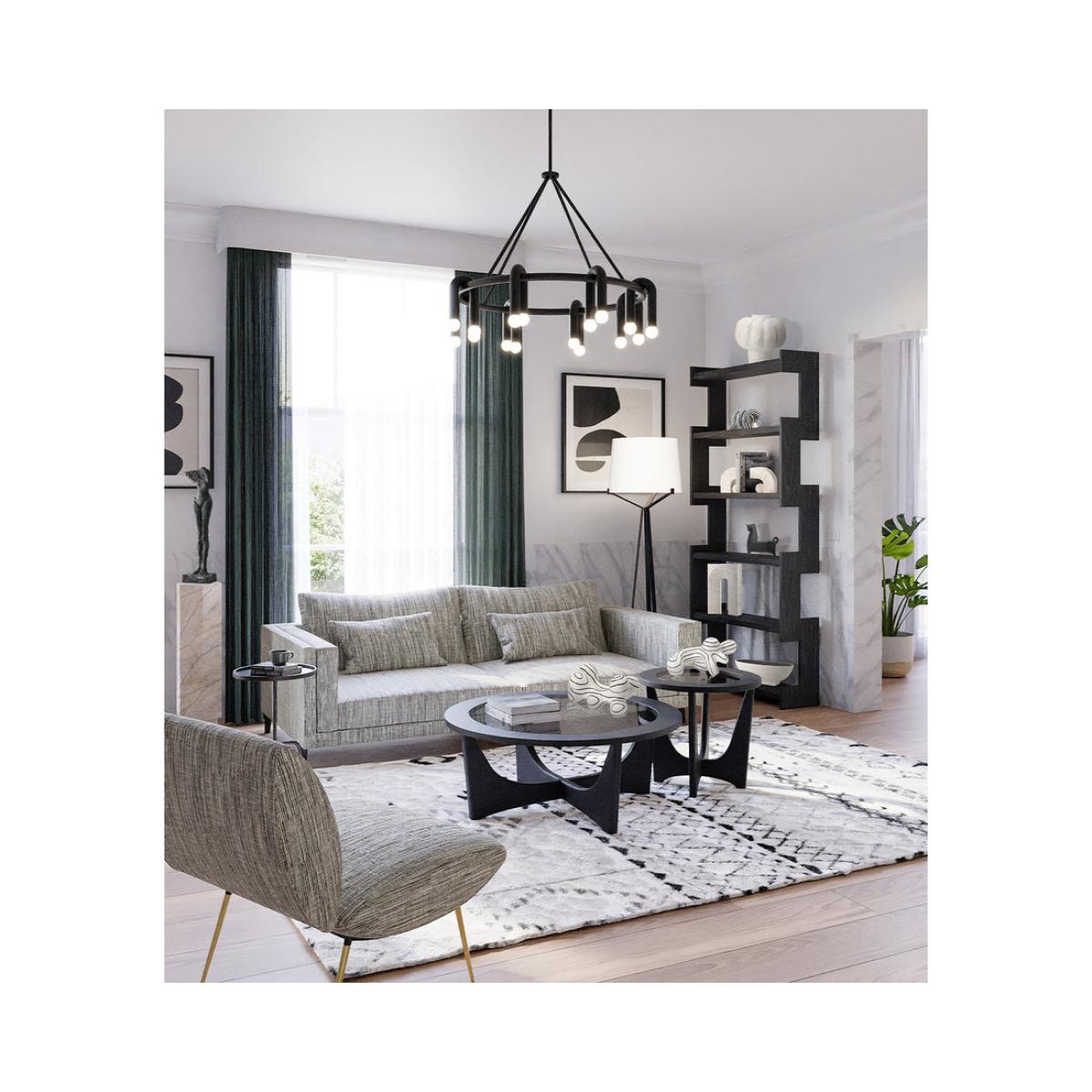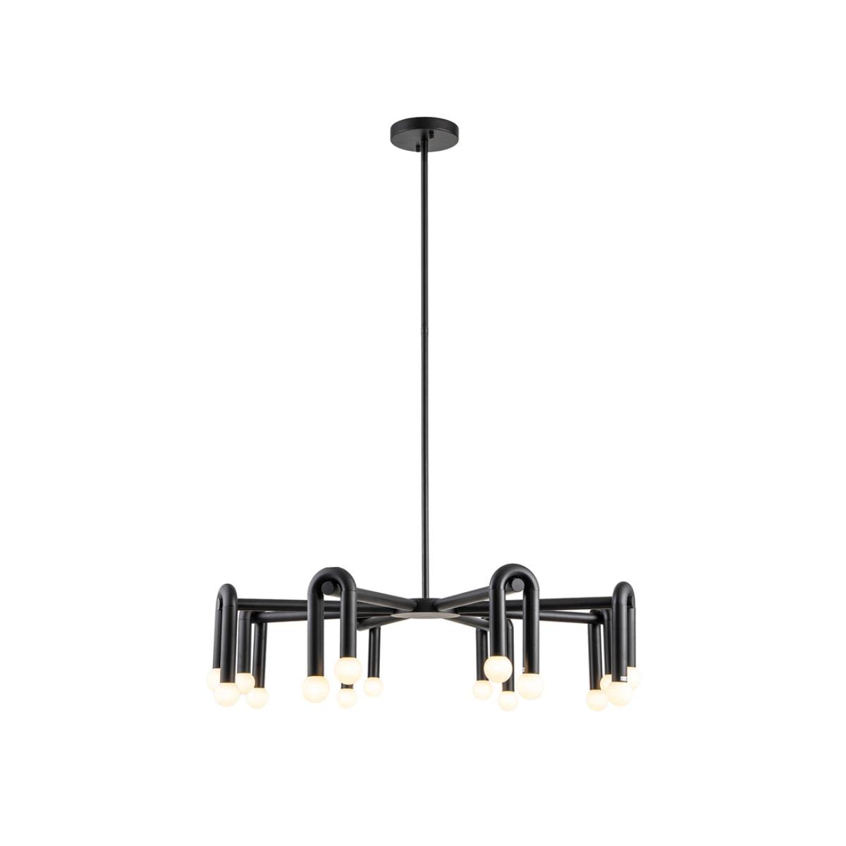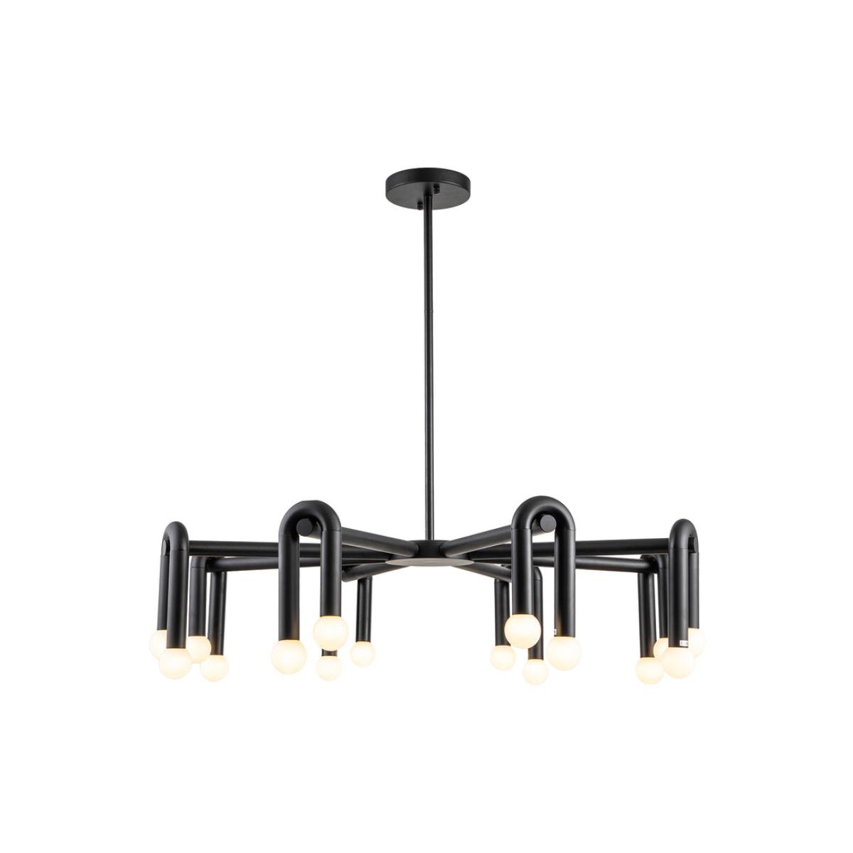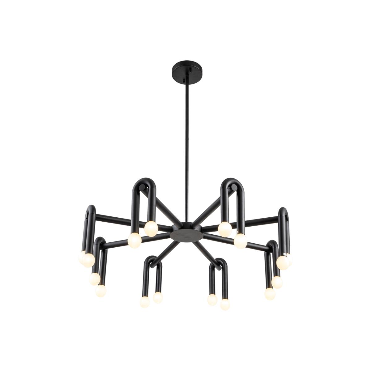 Matt Black Metal, White Glass Serene and elegant, the Melt Pendant Lamp, Black was made to create an atmosphere. The matt black metal design of this pendant is immediately stylish. It features a striking shape with smooth curves that work in contrast to the boldness of the colouring. A blend of soft and hard elements really make this chandelier stand out. (Light bulbs not included. Requires 16 x E14,Max 40. W)