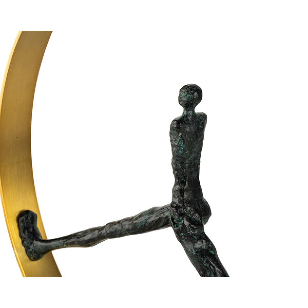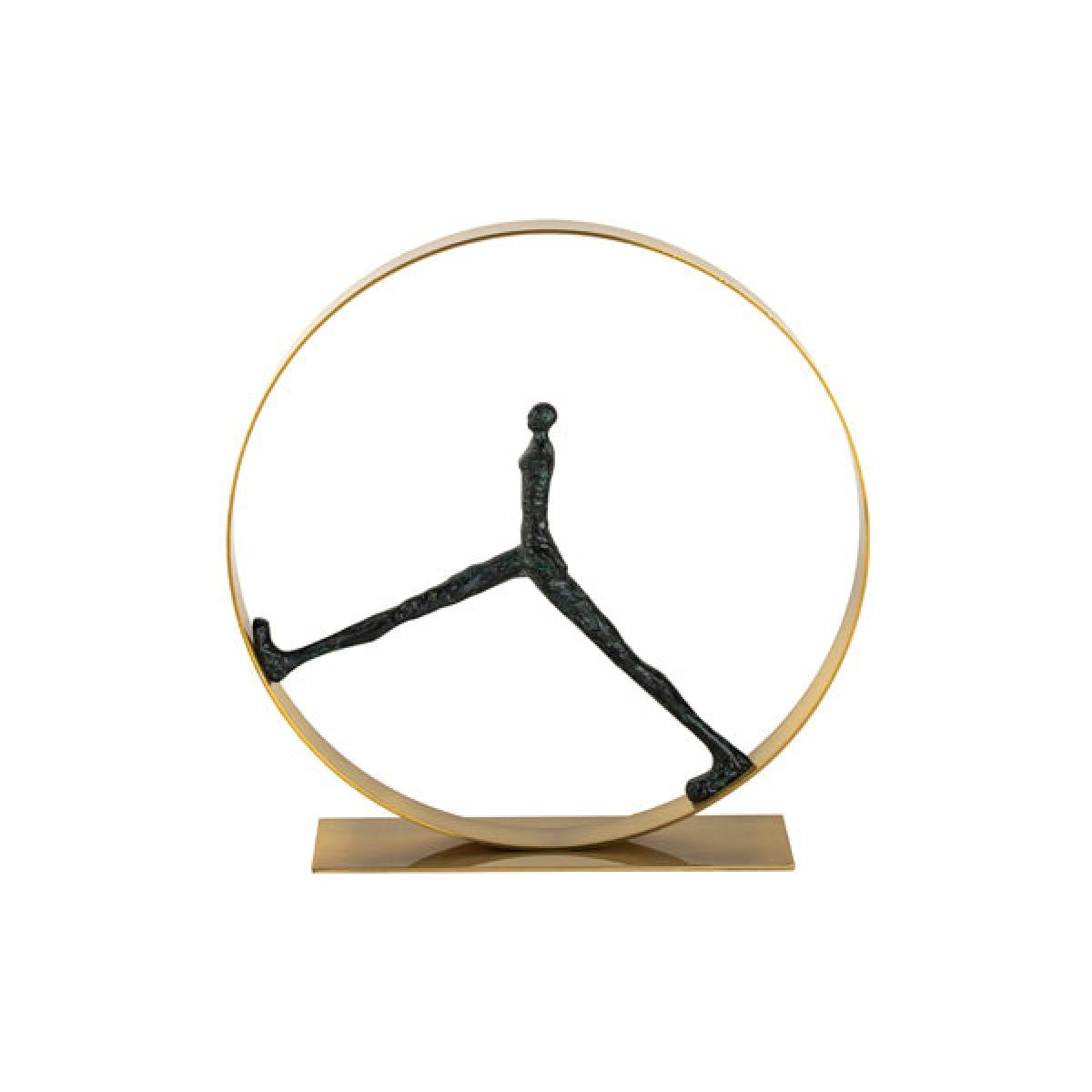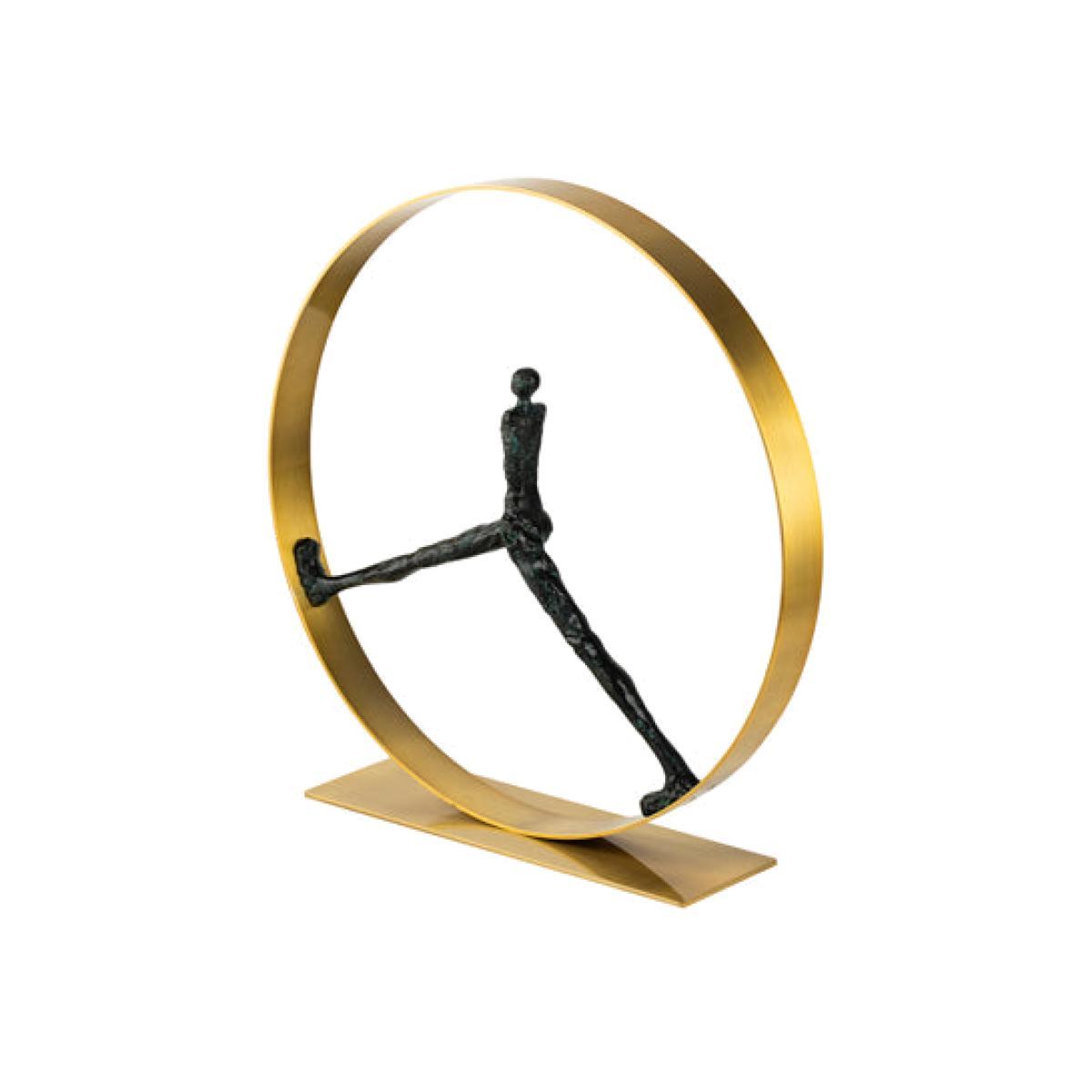 I love this piece because it brings a modern and dynamic touch to any space. The figure's elongated form within the sleek gold circle creates a sense of movement and balance, making it a striking focal point. It works particularly well in contemporary or minimalist interiors, where it can serve as an eye-catching accent on a console table, sideboard, or mantelpiece. For styling tips, consider pairing it with neutral tones and simple decor to let the sculpture truly stand out, or create contrast by placing it alongside richer textures or colours for added visual interest. This sculpture is versatile enough to work in living rooms, offices, or even bedrooms, making it a stylish investment for adding personality to your space.