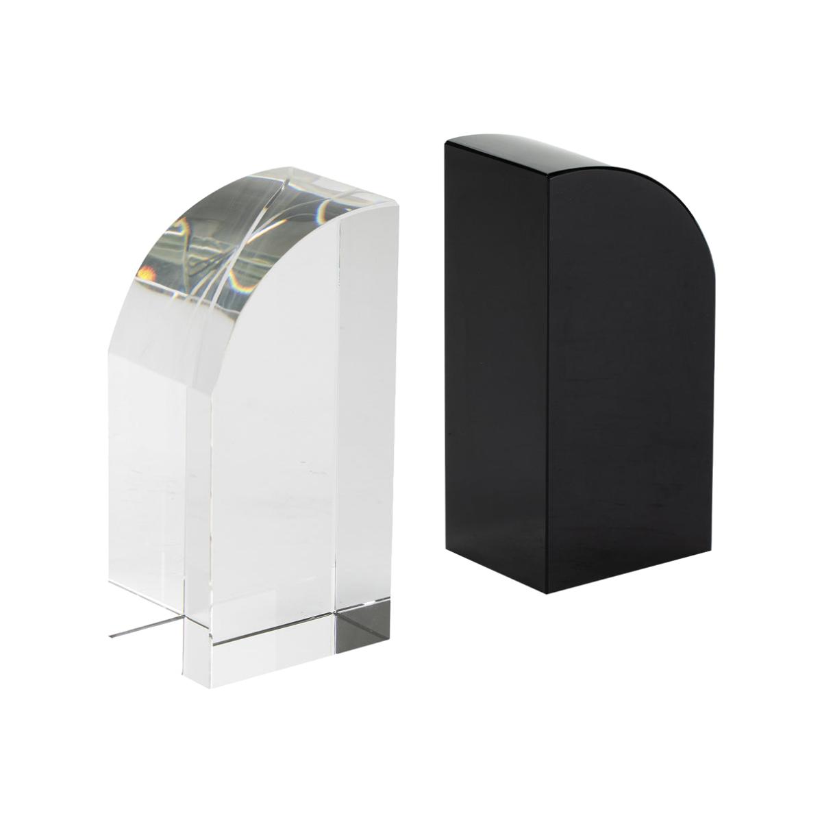 This set of Morval bookends from Liang and Eimil will enhance any bookshelf. Each is cast in a solid acrylic but one is black and the other transparent, creating a striking contrast that is ideal f. View More. This set of Morval bookends from Liang and Eimil will enhance any bookshelf. Each is cast in a solid acrylic but one is black and the other transparent, creating a striking contrast that is ideal for lovers of contemporary style. They look grand on shelves, feature tables and window sills anywhere in the home. Measuring 15cm high, 6cm wide and 15cm long they are also a practical solution for a wide range of book sizes. Of course, you can also use them for a DVD or game collection. The Morval bookends are a superb room accessory and also make a great gift for a book lover.