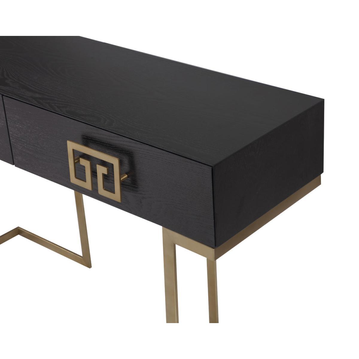 Black Ash Veneer Top Brushed Brass Legs and Handles Handles are 100% hand-made item in metal. Each piece has different small variations and hand made related finishes including small welding points at junctions and not being completely straight, square or flush. These are the characteristic of the hand-made item and it is not a defect. *Moot Trading Ltd is not a lender and acts only as an introducer. The credit product is provided by Klarna Bank AB (publ). Credit is only available to permanent UK residents aged 18 and over, subject to status. Terms and conditions apply. Please note that the following products are not regulated by the FCA: Pay in 30 days and Pay in 3 instalments. Read More.