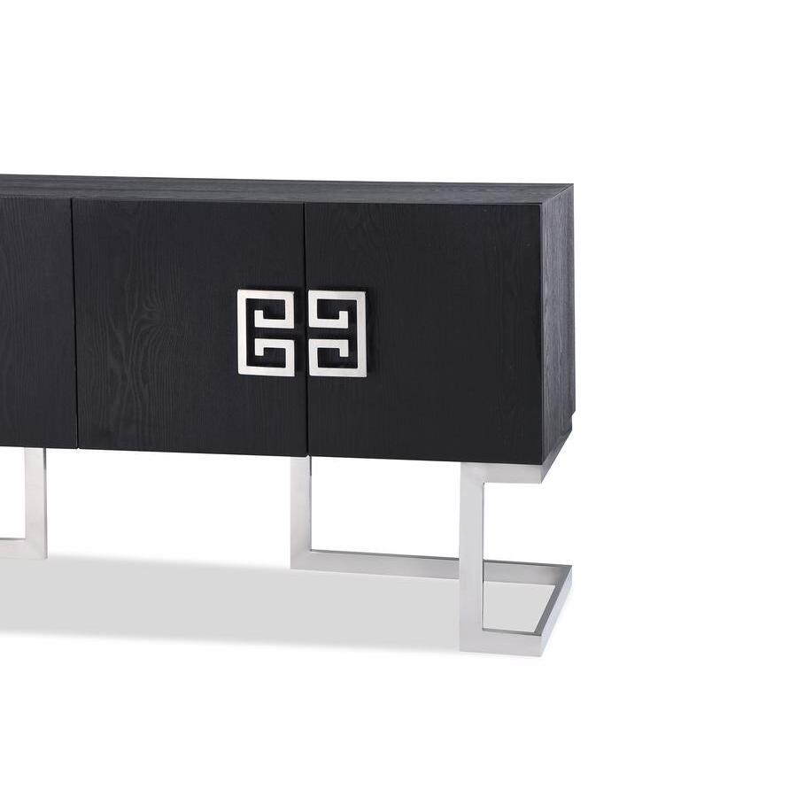 Black Ash Veneer Top Polished Stainless Steel Legs and Handles Handles are 100% hand-made item in metal. Each piece has different small variations and hand made related finishes including small welding points at junctions and not being completely straight, square or flush. These are the characteristic of the hand-made item and it is not a defect. *Moot Trading Ltd is not a lender and acts only as an introducer. The credit product is provided by Klarna Bank AB (publ). Credit is only available to permanent UK residents aged 18 and over, subject to status. Terms and conditions apply. Please note that the following products are not regulated by the FCA: Pay in 30 days and Pay in 3 instalments. Read More.