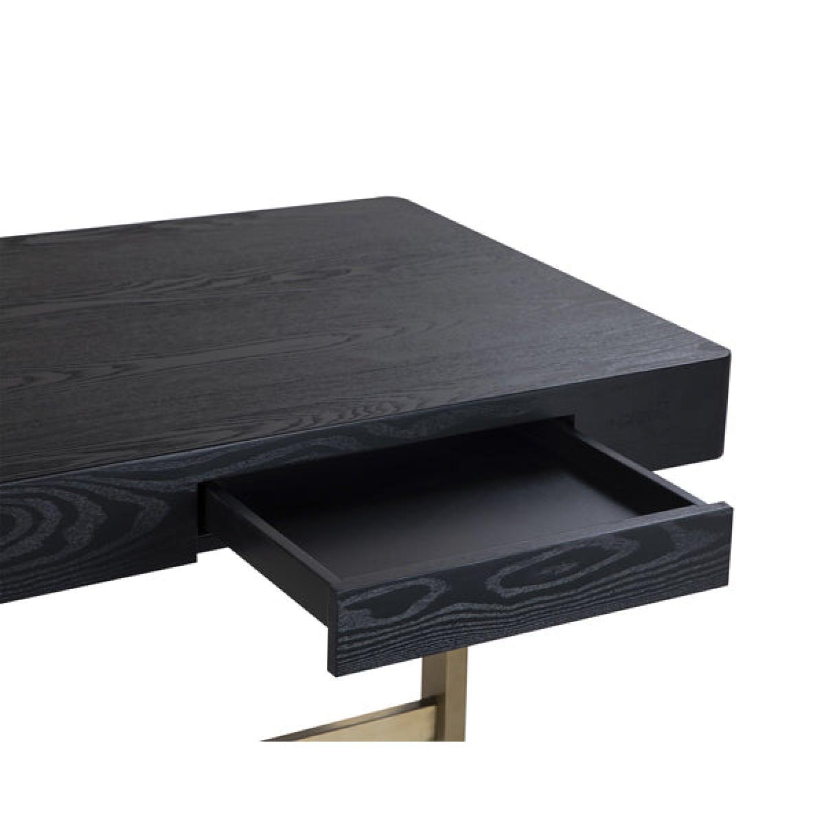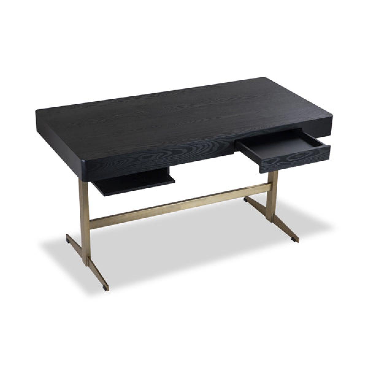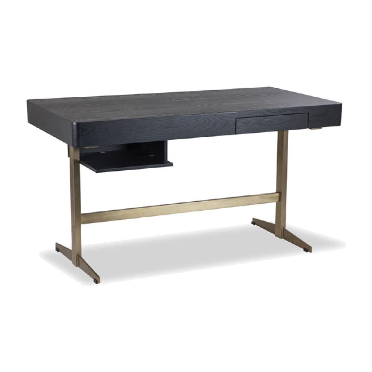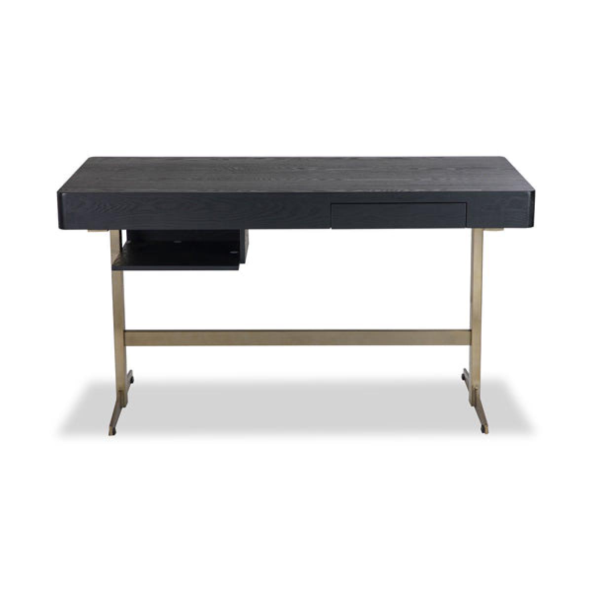 Black Ash Veneer, Brushed Brass Finish Legs For a stylish home office upgrade explore the refined form of the Omega Desk — perfect for offering classic style with a modern twist. With its brushed brass finished metal base, it boasts just the right amount of contemporary charm but doesn’t hold back when it comes to practicality. Equipped with a convenient frieze drawer and an undermounted slide this writing table will instantly elevate and inspire your working space. *Moot Trading Ltd is not a lender and acts only as an introducer. The credit product is provided by Klarna Bank AB (publ). Credit is only available to permanent UK residents aged 18 and over, subject to status. Terms and conditions apply. Please note that the following products are not regulated by the FCA: Pay in 30 days and Pay in 3 instalments. Read More.