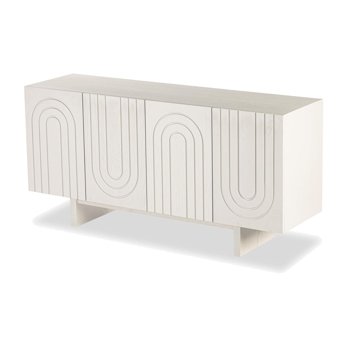 The neutral palette of the soft cream colour on the Origin sideboard is perfect for the pared back style that many has come to love. If quiet elegance is what you're after, then this sideboard is for you. The machined rainbow-like pattern that has been repeated throughout the four doors creates a slight playfulness to this piece. Features