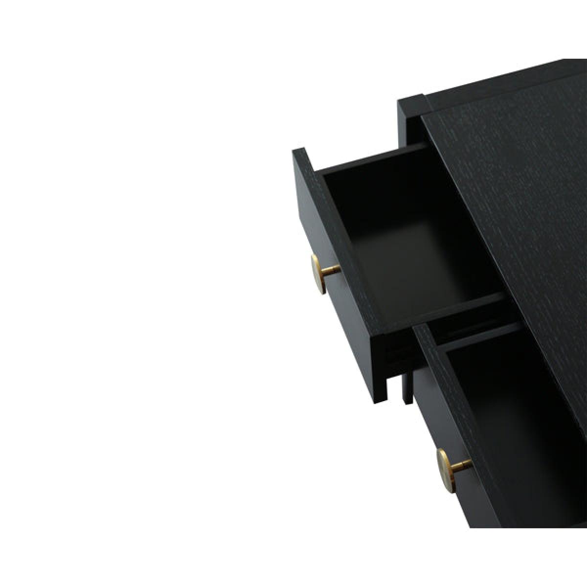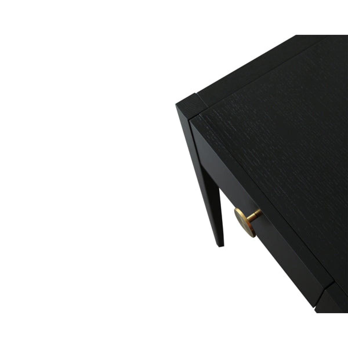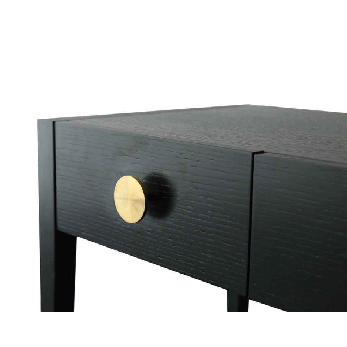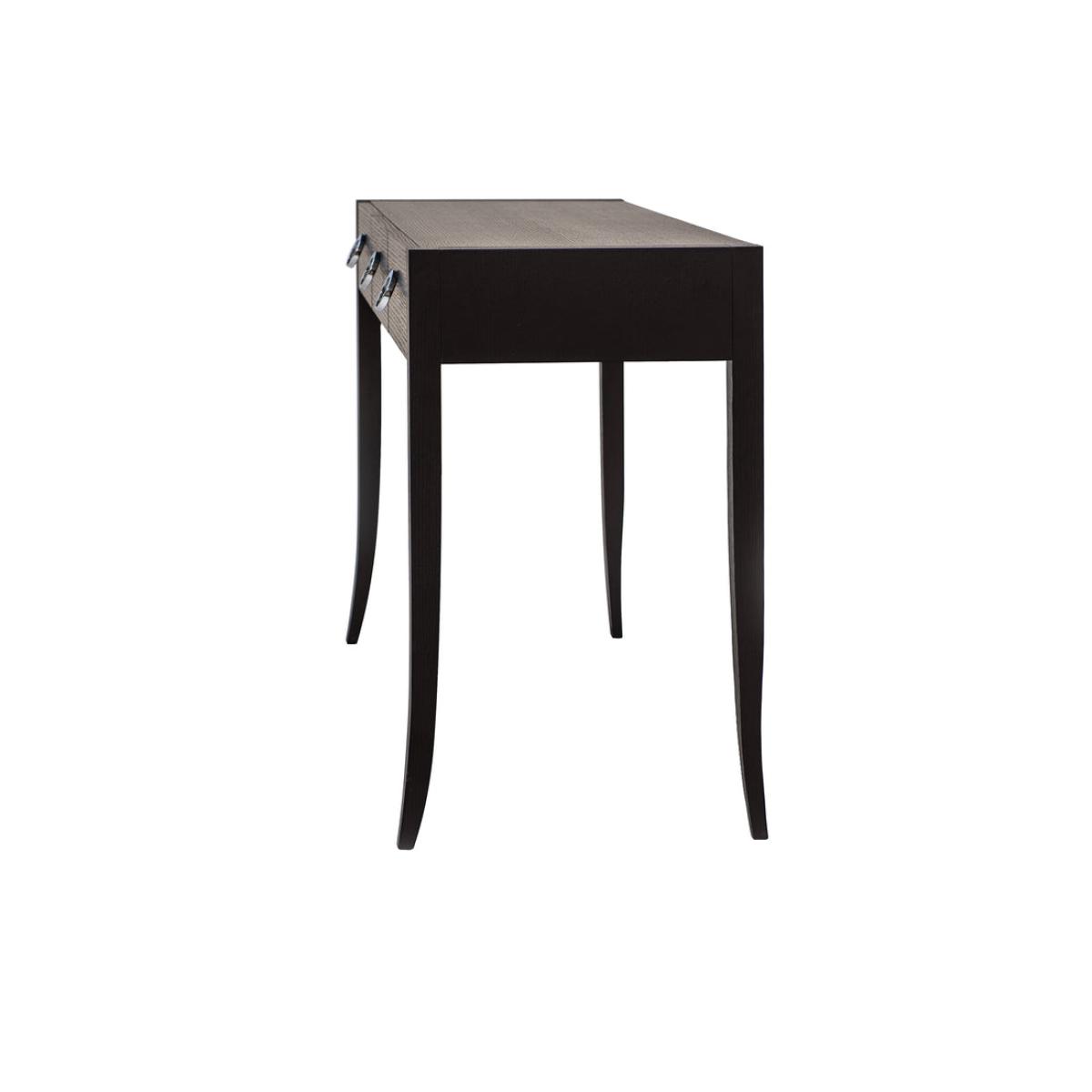 Quartered Oak Veneer, Polished Brass Finish Handles. With its elegant tapering and gently splayed legs the Orly console puts its best foot forward. Veneered in quartered oak and with solid wood legs it is versatile as a dressing table for a bedroom or as a statement piece in a hallway. Its three drawers offer ample storage and are adorned with bold polished brass finish handles. Match it with our Orly Side Table to create a stunning setting for your living room. Some assembly required.