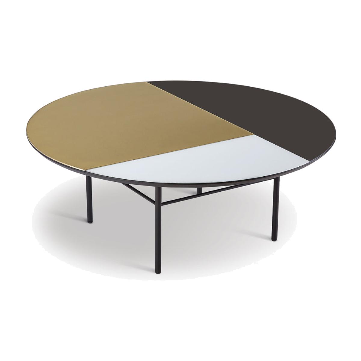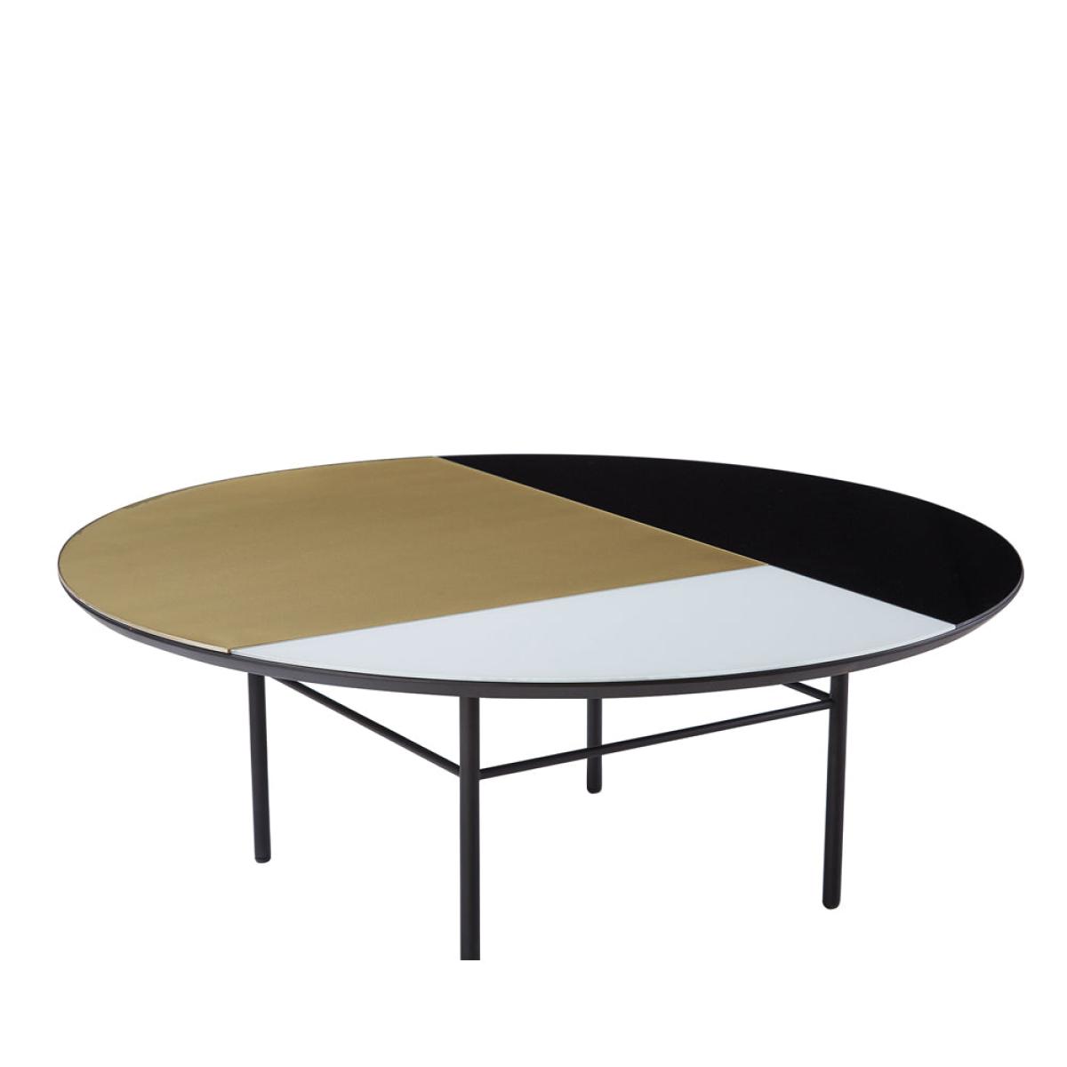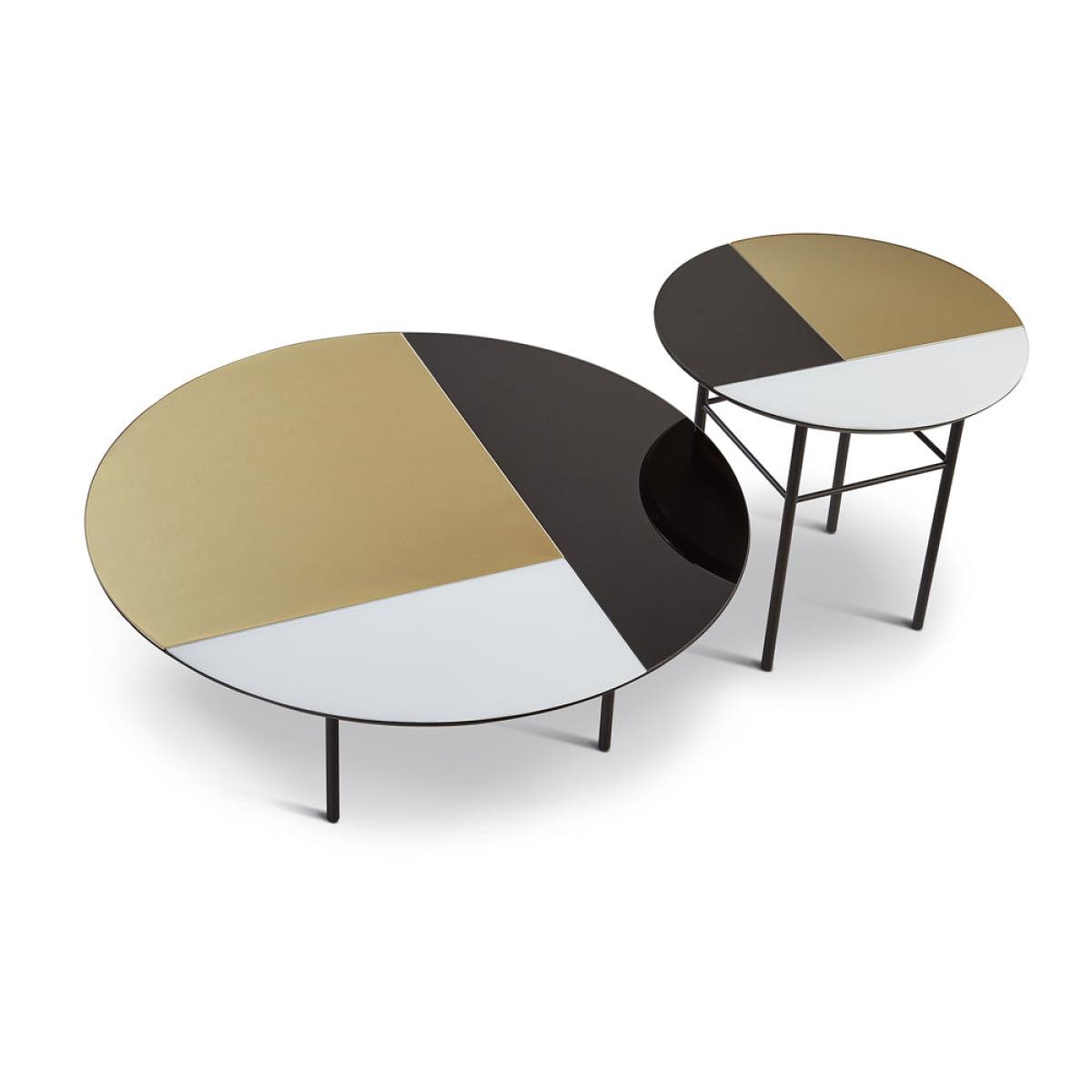 Who says furniture has to be dull? Certainly not Liang & Eimil - their Orphenus coffee table is a playful piece, designed to enhance your decor and bring a touch of art deco styling to your hom. View More. Who says furniture has to be dull? Certainly not Liang & Eimil - their Orphenus coffee table is a playful piece, designed to enhance your decor and bring a touch of art deco styling to your home. Its circular tabletop is split into three bold colours - black, white and gold - and is set upon a square black frame with a sturdy leg at each corner. The round Orphenus table measures 100cm in diameter and stands at 38cm tall. Sure to be a talking point, the mirrored surface of this table is easy to clean, reflects the light and is both beautiful and practical.