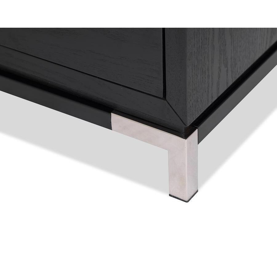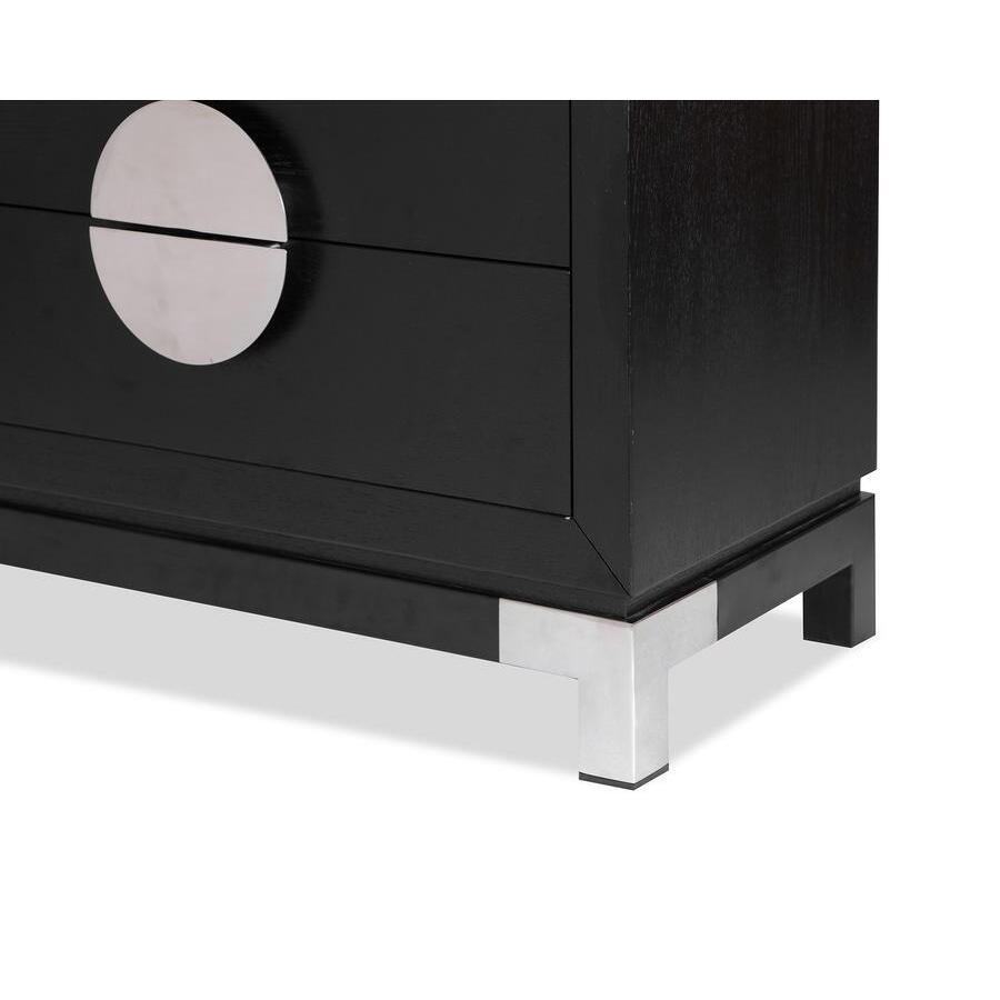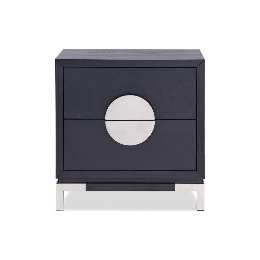 Liang & Eimil's sophisticated and masculine Otium bedside table in polished stainless steel with a dark ash wood finish is a vision in contemporary design. Savvy home interior designers will use the masculine element of Liang & Eimil's clever design to offset the dreamier designs distinct to bedroom décor. The designers achieved this effect through elements such as the polished silver moon centrepiece - whimsical yet functional, this keeps the dark ash wood veneered table from dominating and darkening your bedside. Measuring 60cm wide, 40cm deep and 62cm high, the Otium bedside table champions modern living while offering a touch of the ethereal.