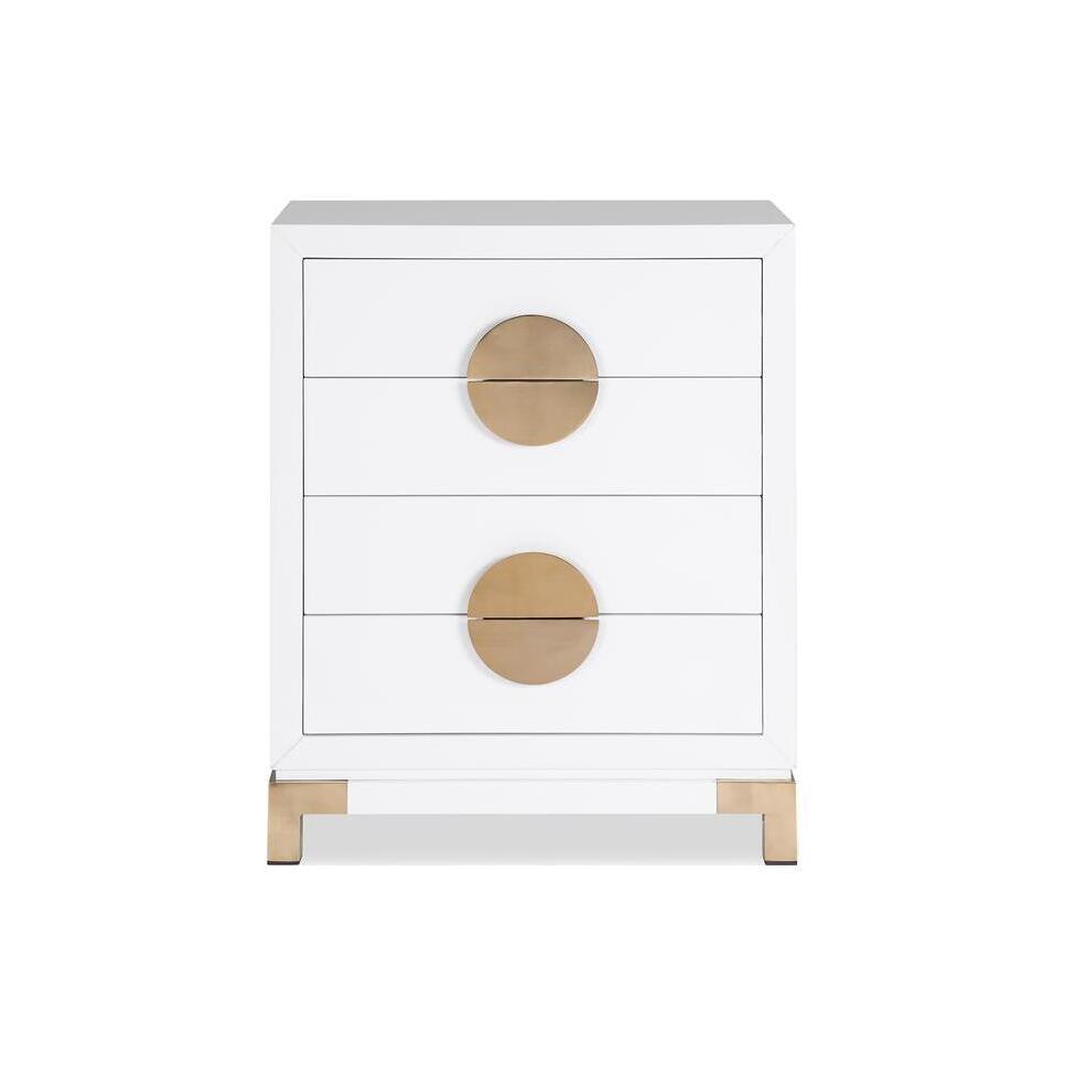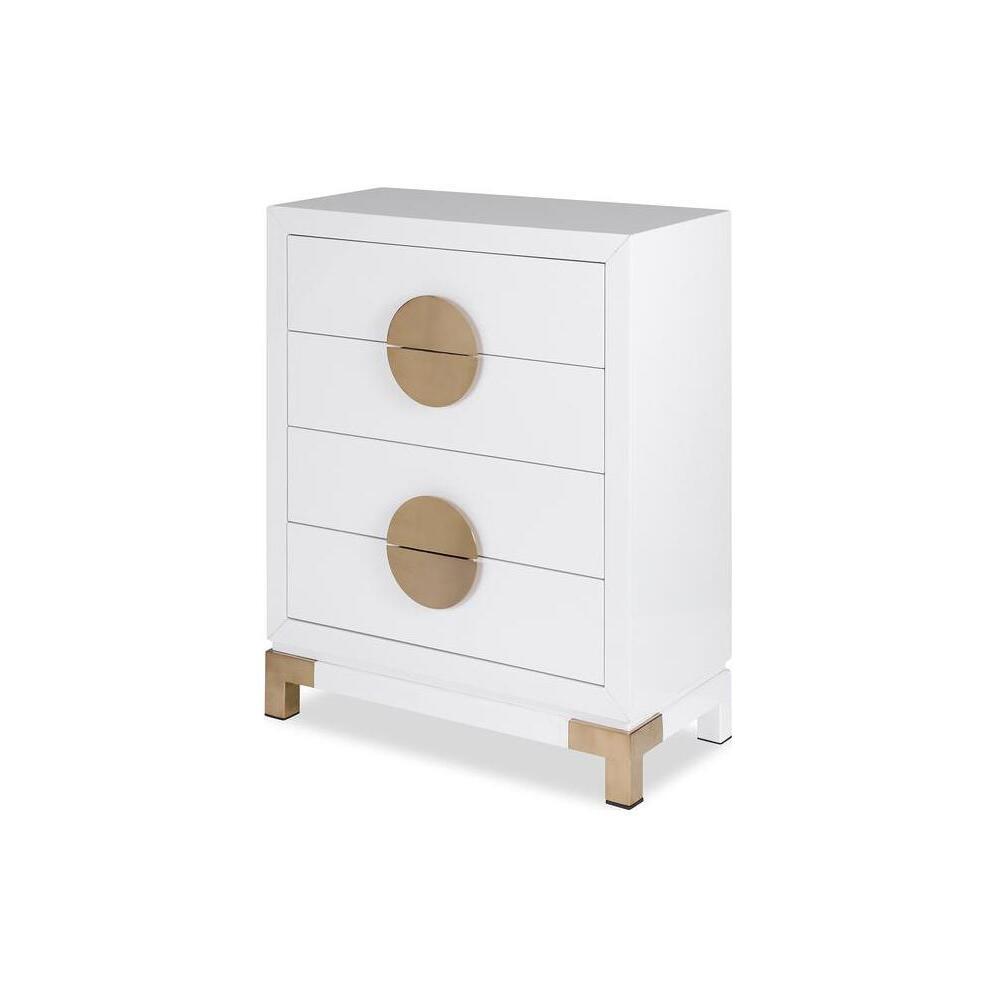 White High Gloss Lacquer, Champagne Gold Handles & Legs Add a dash of modern indulgence to the abode with the opulent Otium Chest of Drawers. Available in various mesmerising metal finishes, the Otium offers gorgeous gracefulness in the circular drawer handles and a clean, uncomplicated energy suited to sleek, chic spaces. Finished in a high-gloss lacquer with legs carefully capped in mesmerising metal, the Otium will attractively illuminate your space and add a luxurious look when partnered with matching pieces. *Moot Trading Ltd is not a lender and acts only as an introducer. The credit product is provided by Klarna Bank AB (publ). Credit is only available to permanent UK residents aged 18 and over, subject to status. Terms and conditions apply. Please note that the following products are not regulated by the FCA: Pay in 30 days and Pay in 3 instalments. Read More.