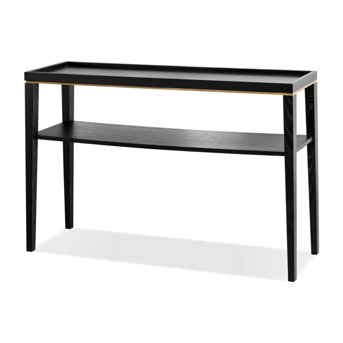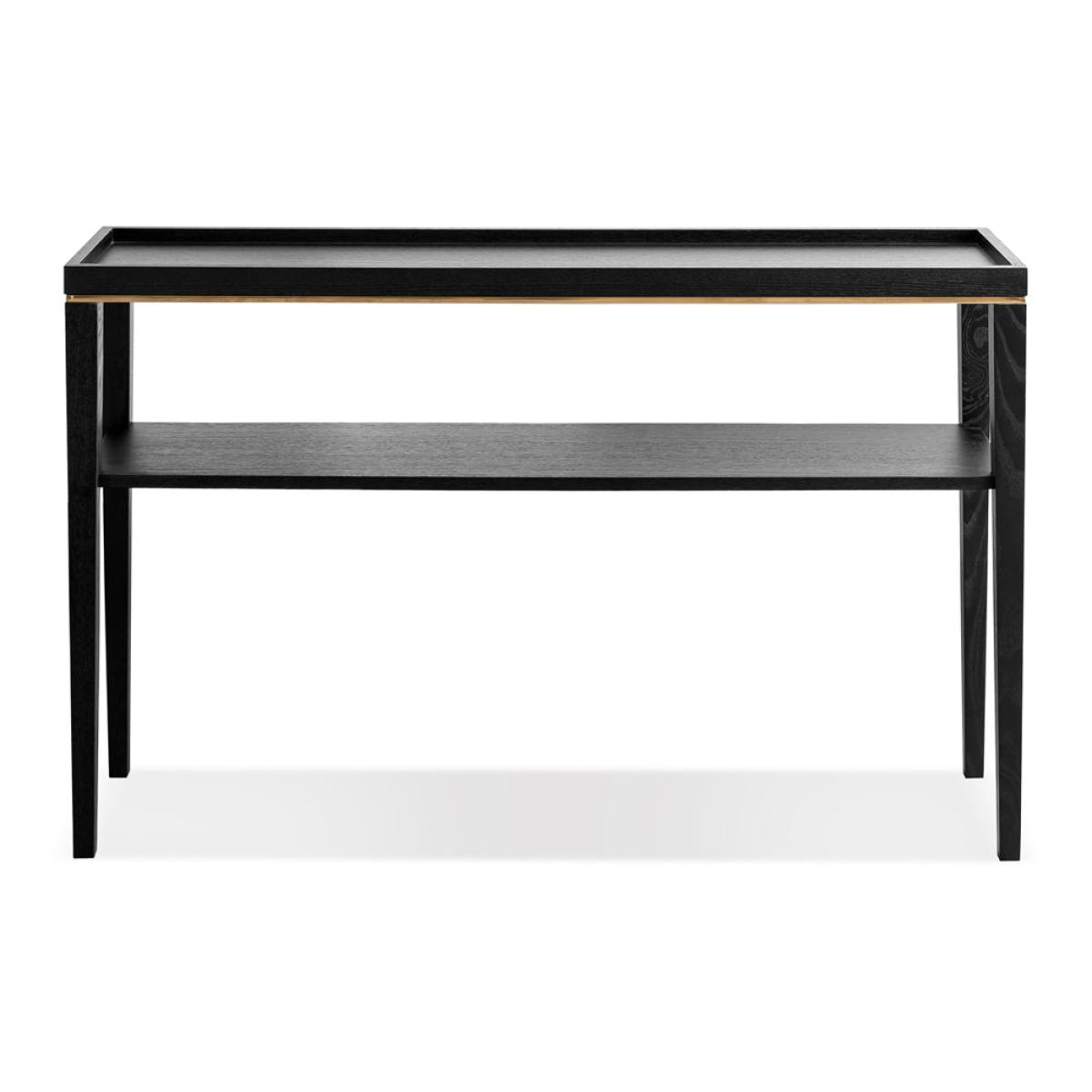Create a striking impact in your living interior with the Otium Console Table. Crafted in wenge oak veneer with solid wood legs and finished in a brushed brass stainless steel, this is one piece which truly stands out. The central shelf provides a little extra storage and is versatile in storing or displaying items.