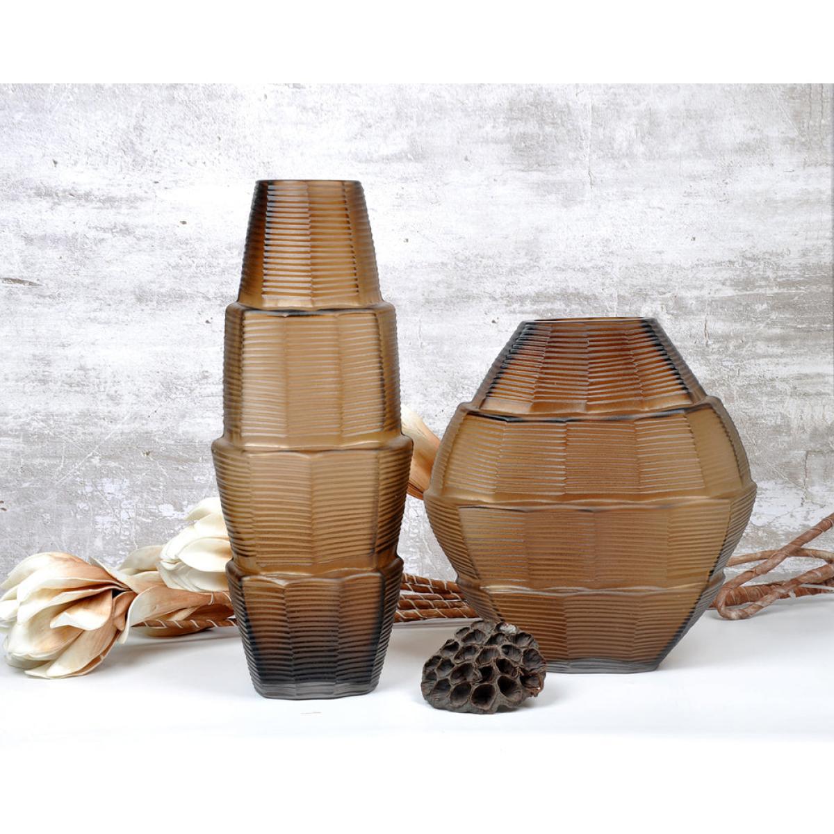 The interior landscape of your home thrives on the judicious placement of objects that delight and surprise the eye. With their clever combination of function and aesthetic attraction, these Penton II chocolate vases are doubly pleasing. Their function is to accommodate beautiful arrangements of flowers - cut, dried or silk - but they also make a powerful impact when standing alone. The beautiful smoky chocolate hue brings a welcome warmth to your room. Crafted in two shapes - tall/thin and shorter/round - their finely ridged texture and multi-angled design will make them a strong focal point on any shelf, table or display surface. *Moot Trading Ltd is not a lender and acts only as an introducer. The credit product is provided by Klarna Bank AB (publ). Credit is only available to permanent UK residents aged 18 and over, subject to status. Terms and conditions apply. Please note that the following products are not regulated by the FCA: Pay in 30 days and Pay in 3 instalments. Read More.