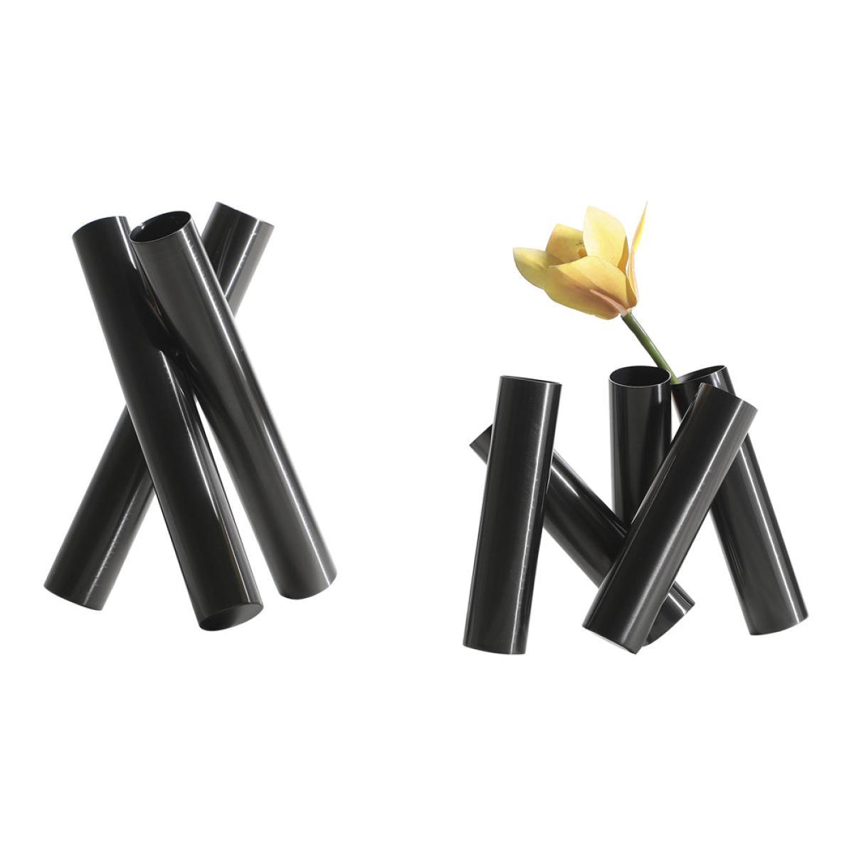 I love the Rex Vase for its bold, contemporary silhouette and its striking black finish, making it a versatile statement piece. It works well in modern, minimalist, or industrial interiors, adding a sculptural element without overwhelming the space. For practical styling, I suggest grouping it with similar monochrome accessories or placing it on a neutral surface to let its shape stand out. Filling it with tall, simple stems or dried botanicals can enhance its architectural quality, but it can also be left empty for a sleek, understated look. This vase is ideal for adding a touch of modern sophistication to any room.