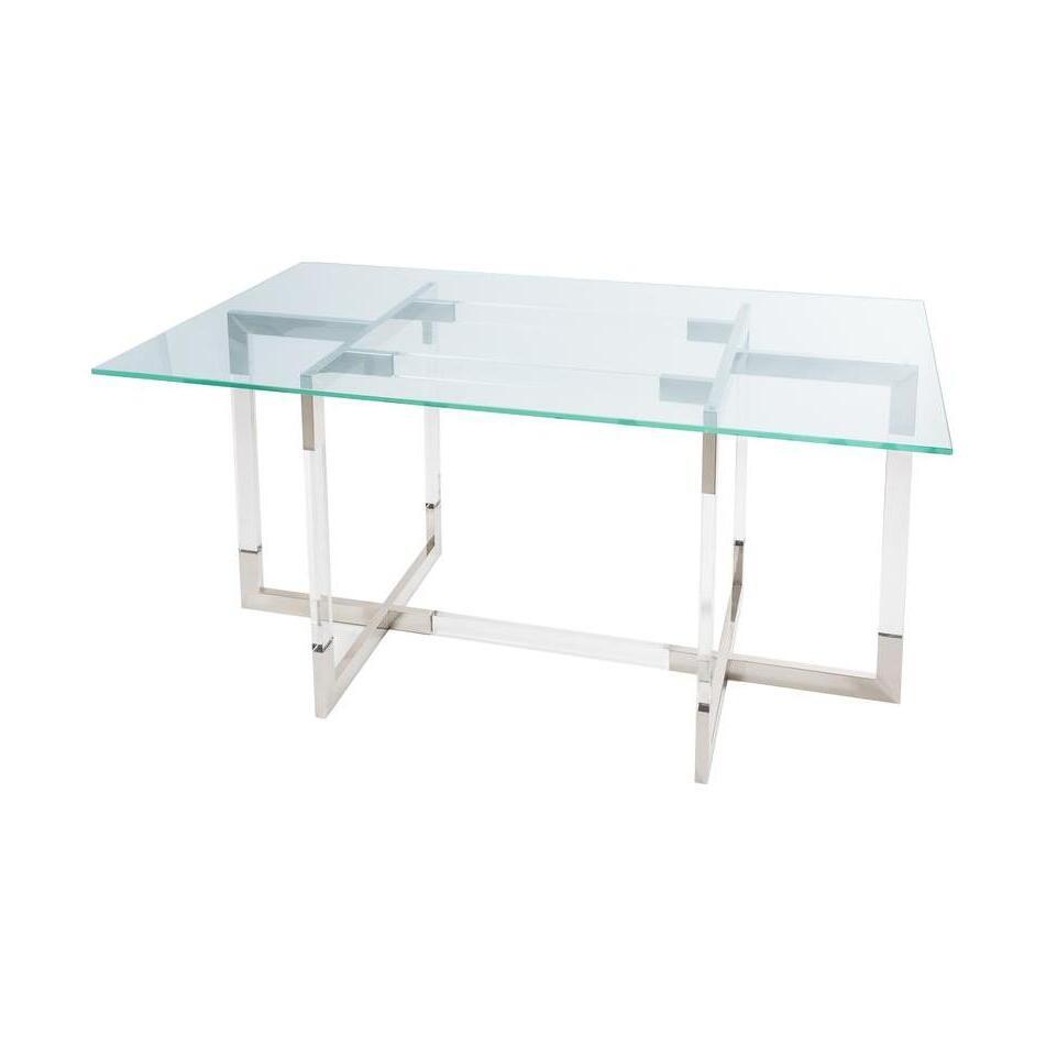 Boasting a sharp geometric design the Rothko Dining Table is available in a polished stainless steel finish and clear toughened glass. Add a touch of sophisticated styling and luxury to the dining room with this elegant dining table.