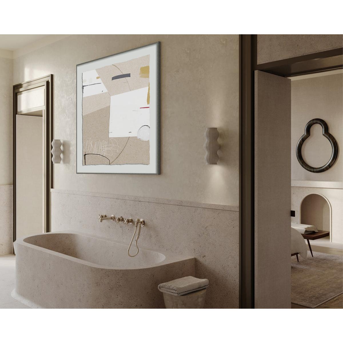 Sandstorm is a simple but eye-catching design that works well in any setting. The elegant white, minimalistic design, and stunning neutral tones will make a strong statement for a modern look. The muted neutral colour scheme of this abstract wall art design, accentuates your walls and gives your interior a finished look. Its premium grey aluminium frame with plexiglass creates the ideal visual appearance. Features: Print on watercolour paper, Grey aluminium frame, Plexiglass