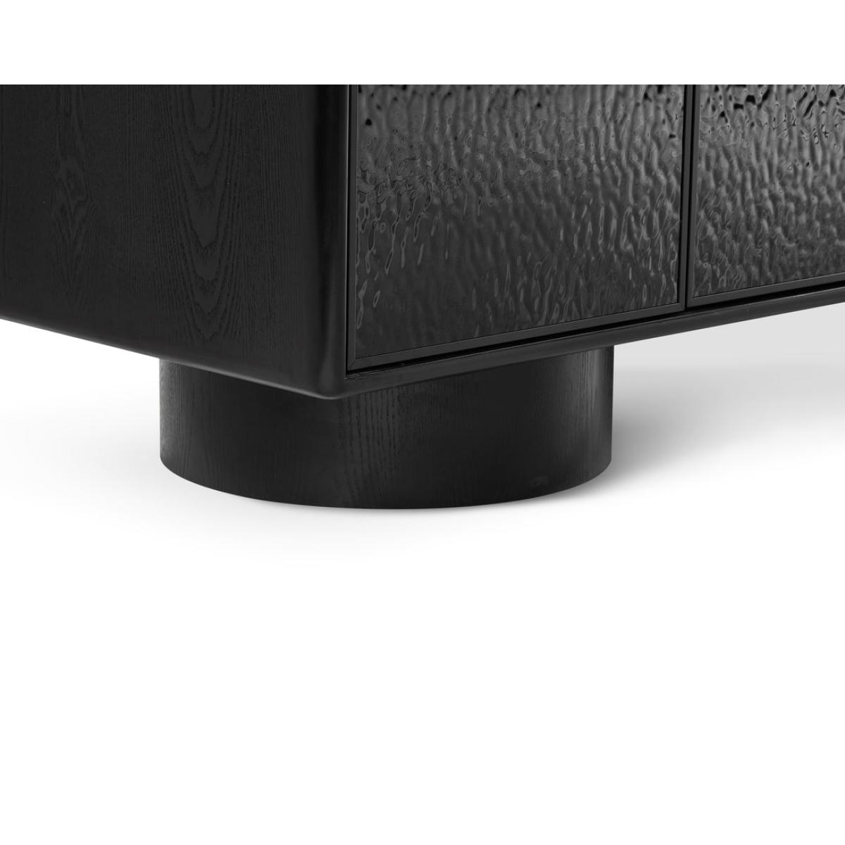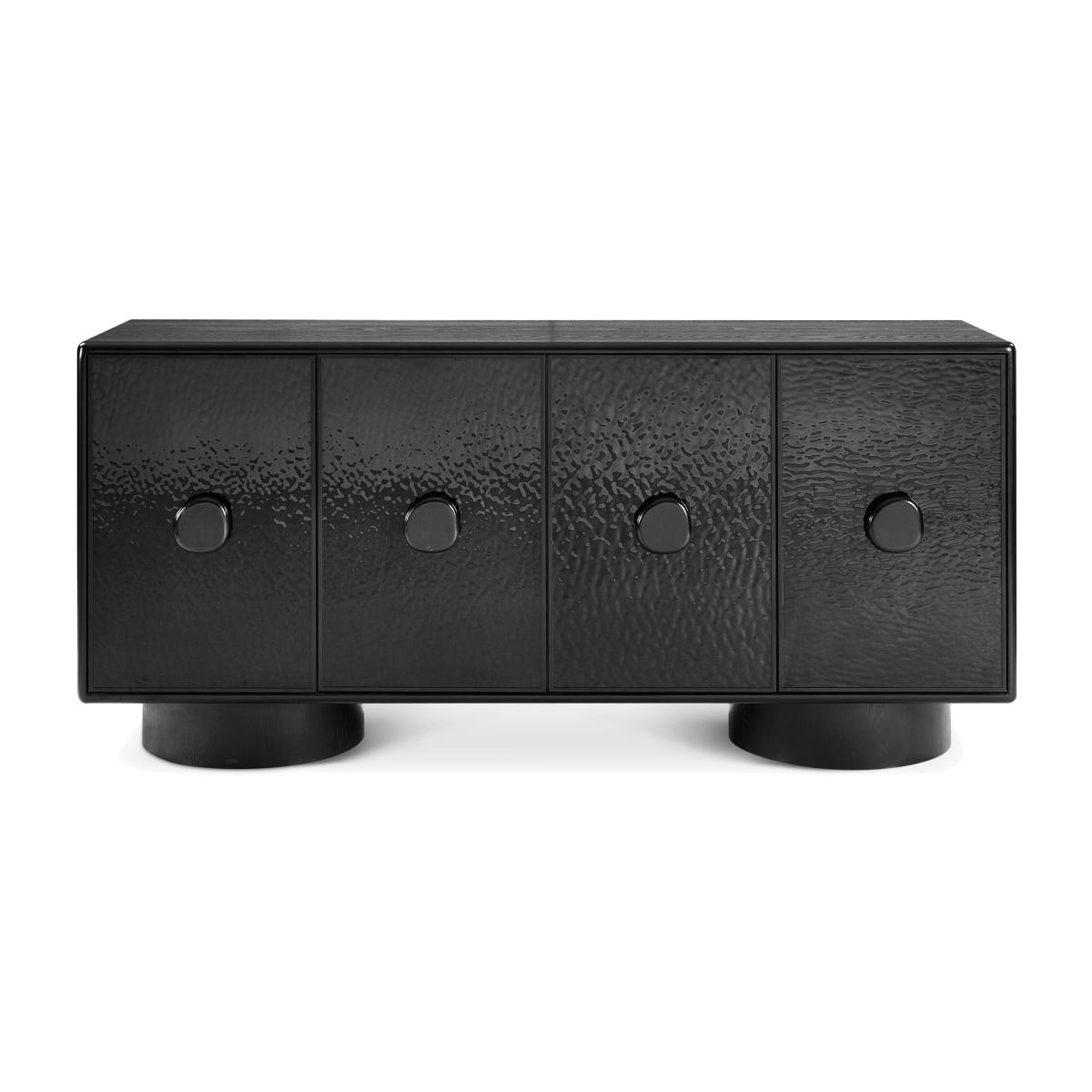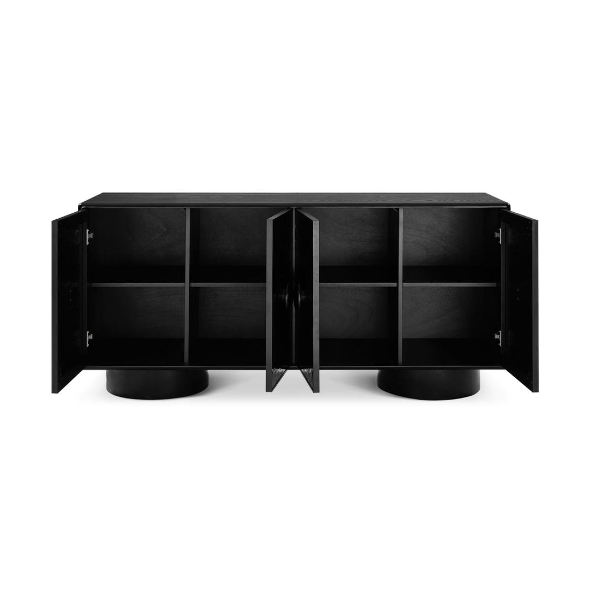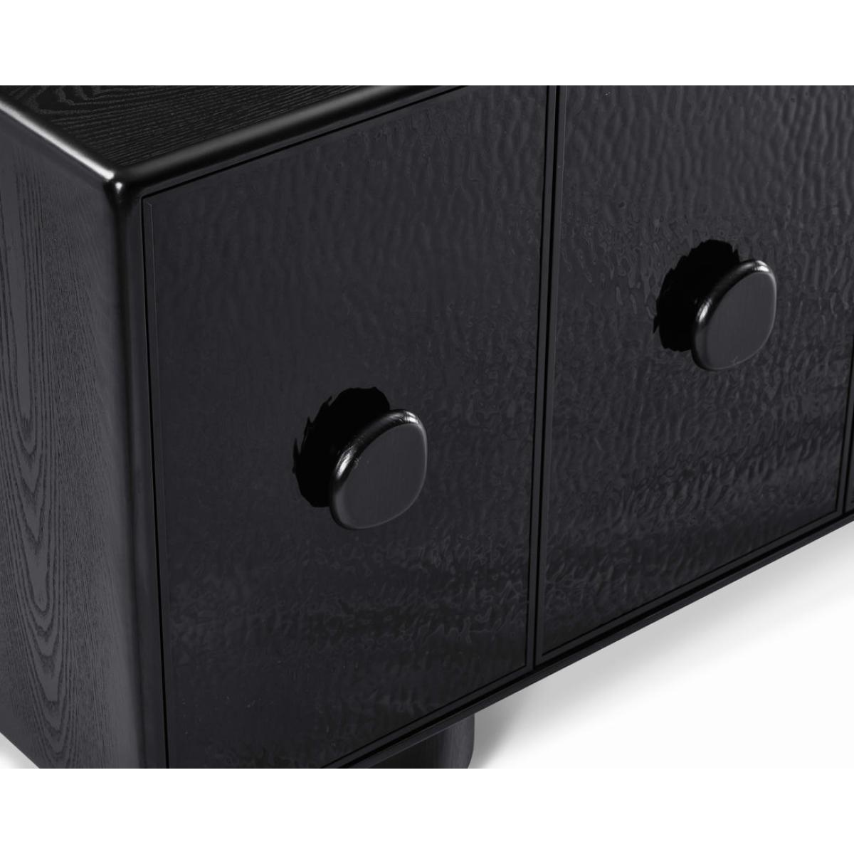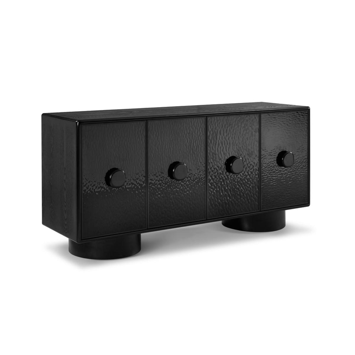 The Sintra Sideboard in Black Ash Veneer captivates with its bold, modern aesthetic, featuring striking round knobs that perfectly contrast with the straight edges and wave design on the front, creating a visual masterpiece. Crafted from Matt Black Wave Ash Veneer, this sideboard offers both durability and elegance. Its intricate wave pattern adds depth and texture, making it an ideal centerpiece. Designed for versatility, the Sintra Sideboard suits both hospitality and residential projects, seamlessly blending into various interior styles while providing ample storage. Features:Matt Black Wave Ash Veneer. Dimensions: H:76 x W:160 x D:45cm Materials:Ash Veneer Assembly Required:Yes Care Instructions:Wipe with a clean, damp cloth. Dry with a clean, soft cloth. No harsh abrasives or cleaners