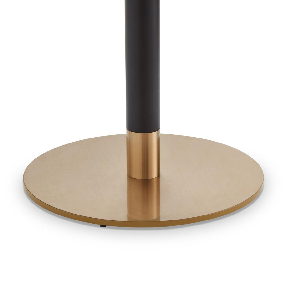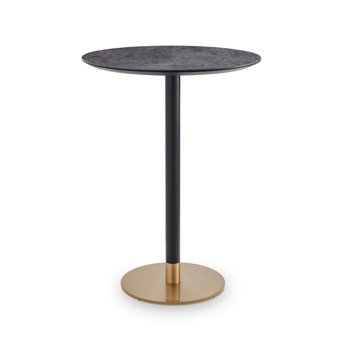 Explore the Theodore Bar Table, an exquisite fusion of dark grey ceramic, matt black stainless steel, and a brushed brass base that seamlessly blends modern design with timeless sophistication. This captivating Bar Table, designed with meticulous attention to detail, becomes a striking focal point in opulent hotel and restaurant settings while adding allure to any dining room. Crafted to perfection, the dark grey ceramic top not only introduces a touch of modernity but also offers practicality with its easy-to-clean surface. The sleek silhouette, complemented by matt black stainless steel legs and brushed brass accents, ensures this table stands out as a mesmerizing centrepiece. Elevate your dining experience with the Theodore Bar Table, effortlessly combining style, durability, and easy maintenance in a dark grey hue that exudes timeless charm. Also available in white, this table caters to diverse tastes, making it a versatile and sophisticated addition to any space.