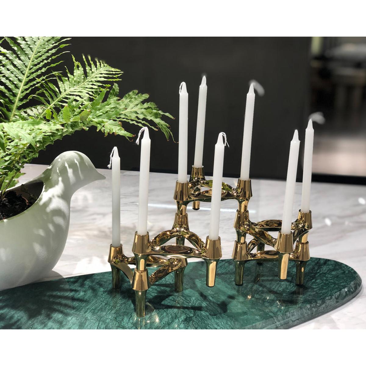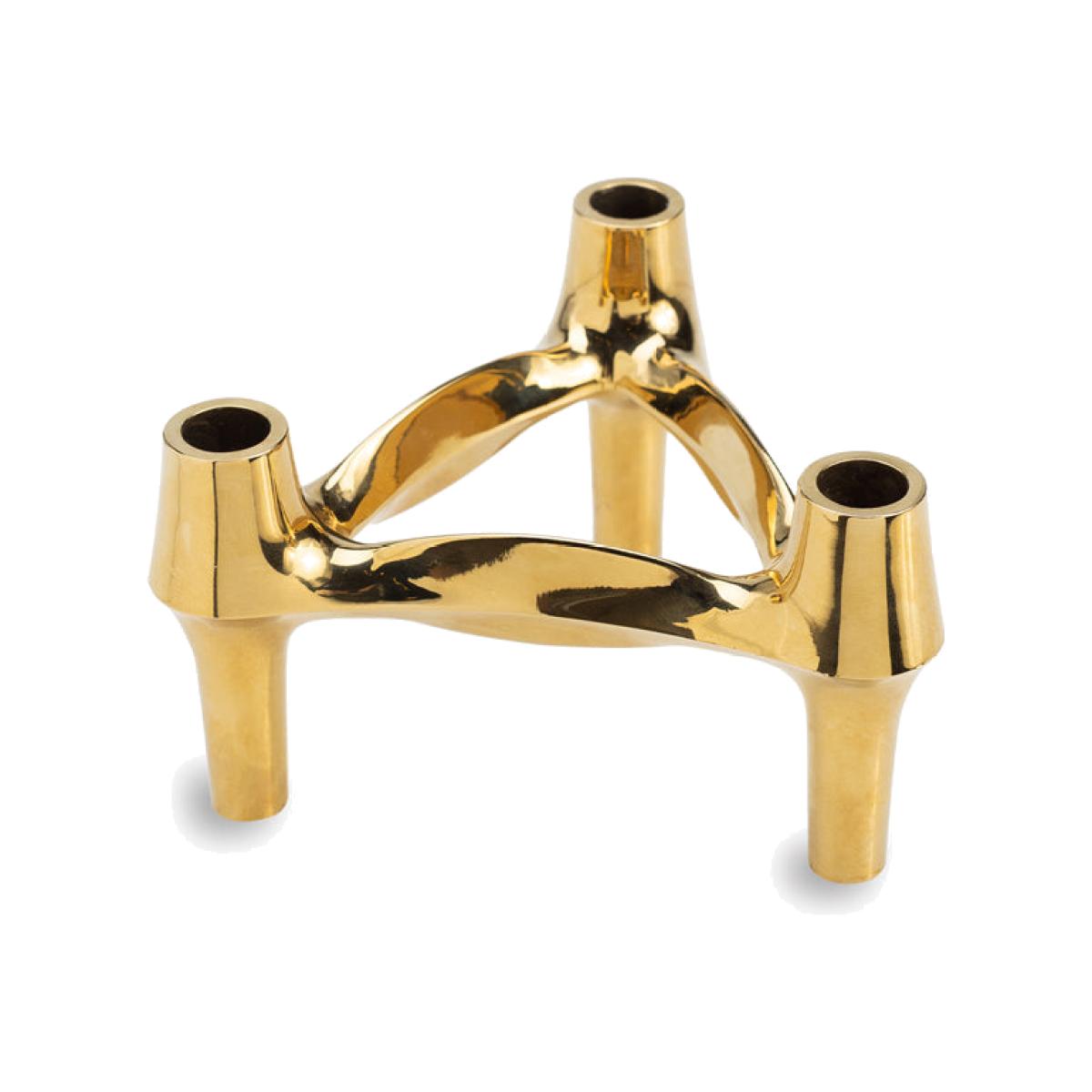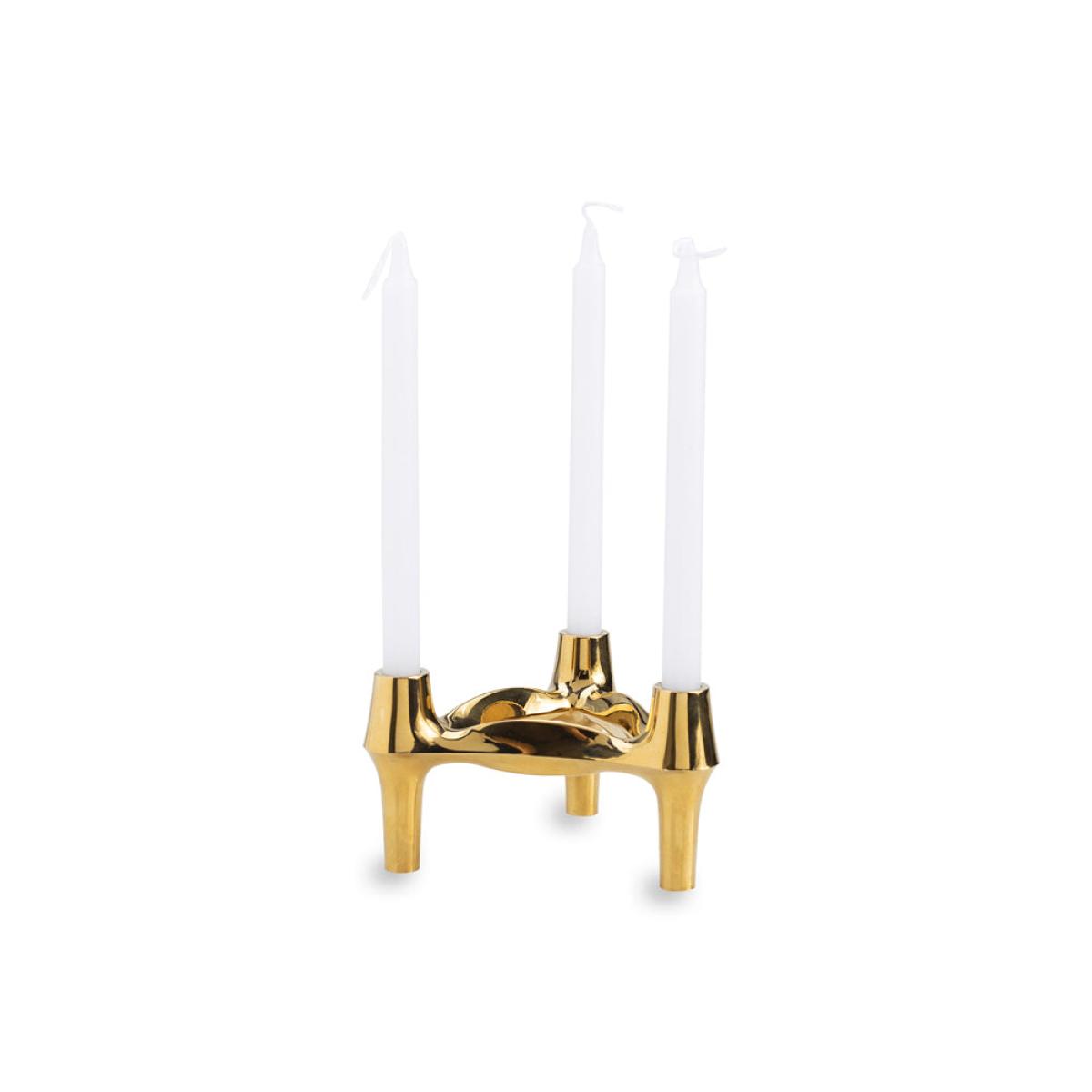 With its shining finish in a luxe golden colour, the Liang And Eimil Triangular Candle Holder Gold is a glamorous way to bring the atmospheric and flattering effects of candlelight into your home. The impeccably detailed candleholder contains three cradles for holding candles of your choice stylishly. The three candle-holding cradles are held together by a triangle of metal sitting on a trio of elegantly tapered supports. As a feature of this clever design, the tapered supports can also slot into the cradles, which means two or more of these candle holders can be fitted together in a variety of distinctive and impressive configurations. *Moot Trading Ltd is not a lender and acts only as an introducer. The credit product is provided by Klarna Bank AB (publ). Credit is only available to permanent UK residents aged 18 and over, subject to status. Terms and conditions apply. Please note that the following products are not regulated by the FCA: Pay in 30 days and Pay in 3 instalments. Read More.