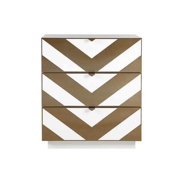 I love this piece for its contemporary yet striking design-perfect for adding a modern touch to both minimalist and eclectic interiors. The combo of matte white with dark brass accents makes it versatile enough to work in a variety of settings, from urban apartments to more refined schemes. Practical styling tips include pairing it with soft textiles and metallic accessories to balance the bold pattern, or contrasting it with muted tones for a clean, understated look. It’s particularly effective as a statement piece in a bedroom or hallway, providing ample storage space and an instant visual impact.