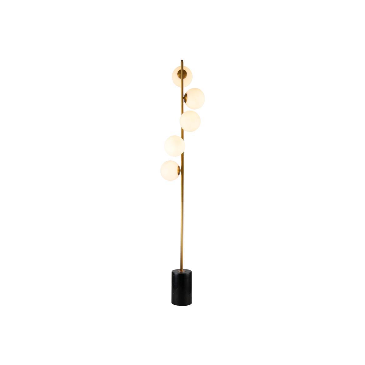 I love this floor lamp for its sleek, contemporary design with a touch of glamour - the golden accents and unusual globe arrangement make it a real statement piece. It works particularly well in modern and minimalist interiors, adding warmth and visual interest without overwhelming the space. For styling tips, consider placing it next to a neutral sofa or armchair to create a cosy reading nook, or in a corner where it can highlight architectural details. This lamp pairs beautifully with layered textures and subtle colour palettes, making it versatile enough to elevate various living room or bedroom schemes. It's both functional and decorative, making it an excellent choice for bringing a sophisticated vibe to your home.