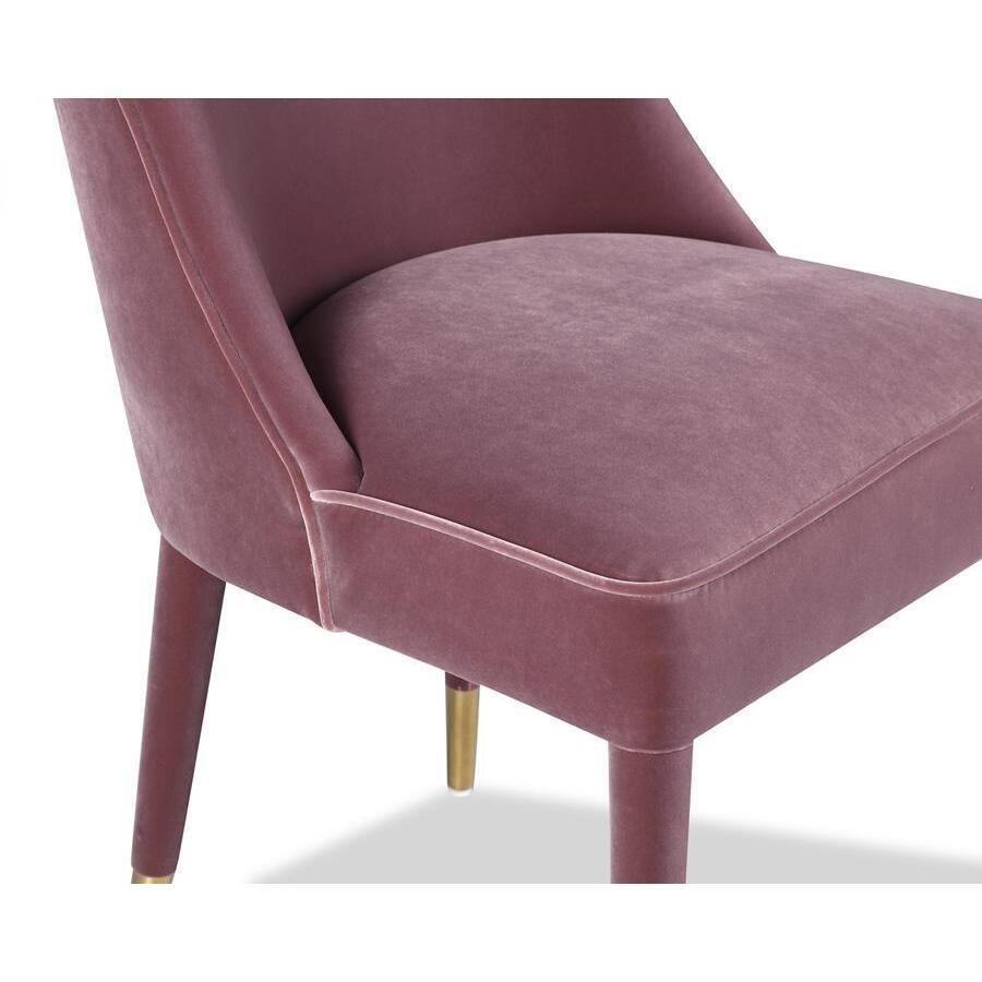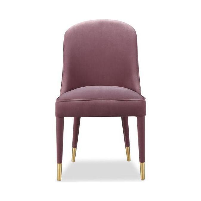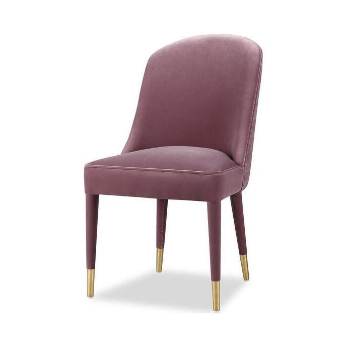 Gainsborough Lilac Velvet and finished with gold finish metal tips. Slender and sleek with just the right amount of curvature, the Viva makes an attractive interior asset and is entirely upholstered in luxuriously lavish velvet accented with golden-capped feet of the tapered legs. Available in a small number of sublime shades, the chair exudes an enthralling appeal with a lustrous sheen offering a tactile texture.