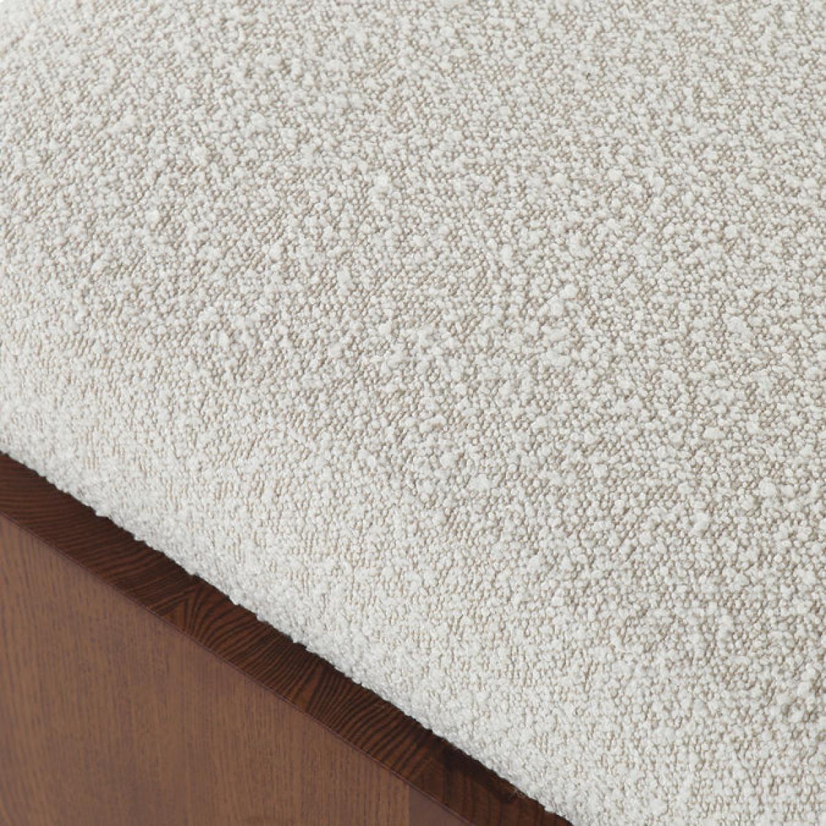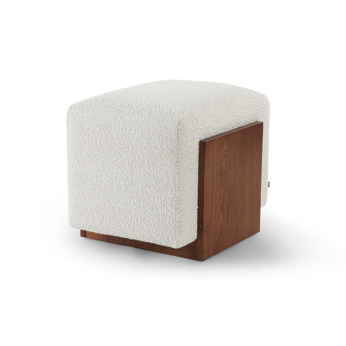 This luxurious midcentury revival has plush upholstery made of bouclé fabric in a sand colour. Its solid wood base in classic brown colour, which is cleverly proportioned, completes the opulent appearance. If you wish to bring earthiness to a room, the Warwick stool is a must. Dimensions: H: 46 x D: 44 x W: 55.5 Materials: Solid Wood+P2 Plywood, 95% Polyester 5% Arcylic Assembly Required: No Care Instructions:Spot clean fabric only. Wipe a wood with a dry soft cloth