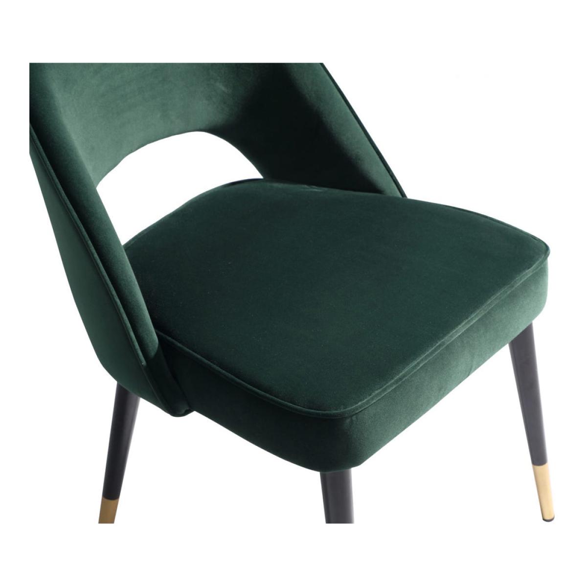 I love the Yves chairs for their sleek, contemporary shape and the rich Castleton Green velvet finish, which adds a touch of sophistication without feeling overly formal. They work particularly well in modern or eclectic dining spaces, where their bold colour can serve as a statement piece. For styling tips, consider pairing them with a neutral-toned table to let the chairs stand out or mix with brass accessories for a luxe touch. Practical advice would be to use cushions for added comfort, especially if space allows, and to ensure the legs are protected to keep the finish pristine. Overall, this set brings vibrant colour and stylish profile to any dining area.