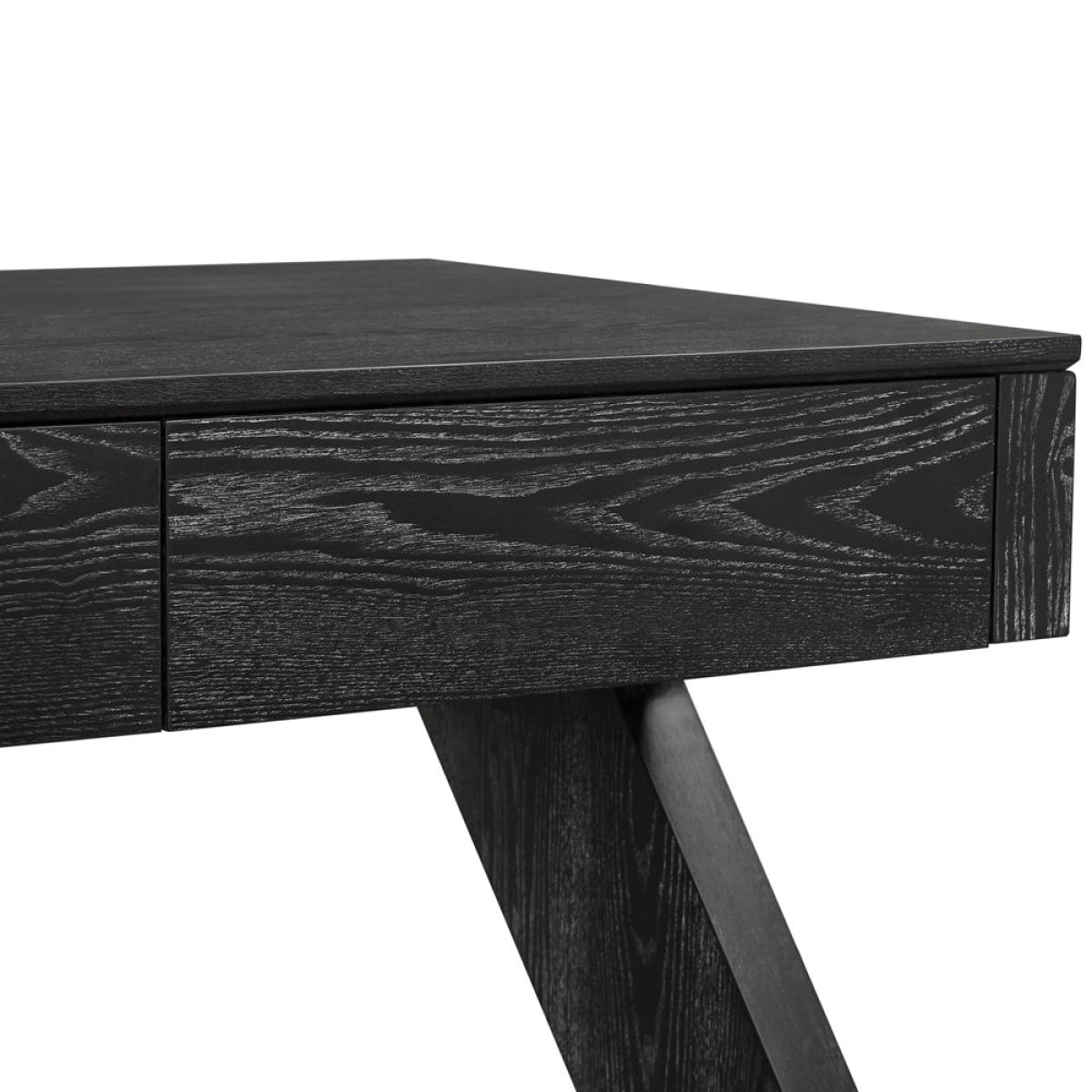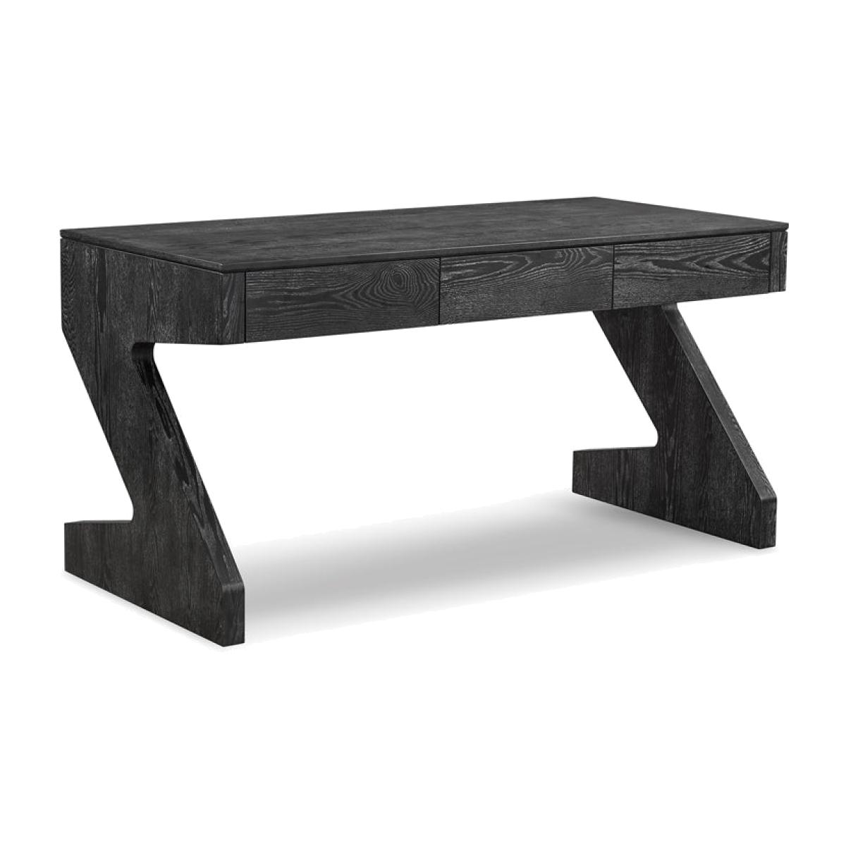 Upgrade your workspace with the exquisite Zeta Desk, a masterpiece that effortlessly blends sophisticated design with exceptional functionality. Crafted to inspire creativity and productivity, this desk is more than just a piece of furniture – it's a statement of refined taste and modern sensibility. The Zeta Desk exudes a timeless allure with its striking ebony matt black ash veneer finished with cerusing wax to accentuate the wood grain. This meticulous craftsmanship not only enhances the desk's visual appeal but also ensures its durability and resilience. The unique cerused finish adds depth to the wood's natural grain, creating a captivating play of textures that's sure to draw admiring glances. One of the defining features of the Zeta Desk is its innovative Z-shaped legs, a testament to cutting-edge design and engineering. These legs provide exceptional stability and support while adding a touch of design element. The Zeta Desk's ingenious leg structure not only contributes to its aesthetics but also offers ample legroom. Features:Ebony Matt Black Ash Veneer with cerused finish