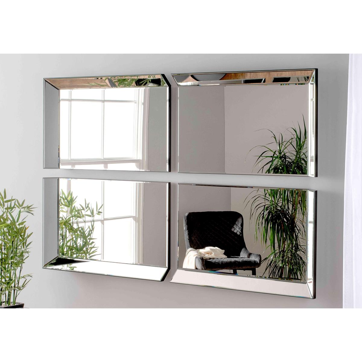 We applaud the design concept that underpins this mirror – it’s composed of four separate rectangular mirrored panels – and we love its bold and glamorous look. Why you'll love it This statement mirror is composed of 4 separate panels. Striking glam style. Individual mirrors have deep, hand-bevelled edges. Made in the UK. This 4-panel mirror is part of the Furniture Village home accessories collection. What you need to know Made of wood. Mirrors are bevelled. Can be hung horizontally or vertically. For indoor use only. Dimensions per panel Height: 83 cm (33 in). Depth: 9 cm (4 in). Width: 52 cm (21 in). Approximate dimensions when displayed Height: 167 cm (66 in). Depth: 9 cm (4 in). Width: 105 cm (41 in).