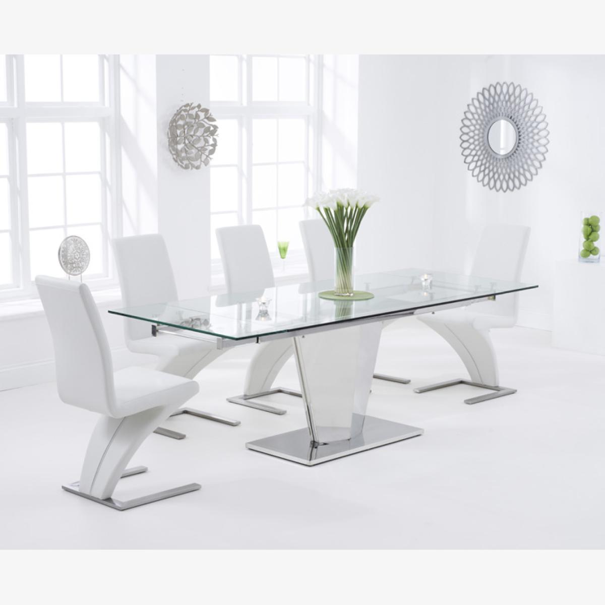 Liberty 160cm Extending Glass Dining Table With 6 Ivory White Hampstead Z Chairs