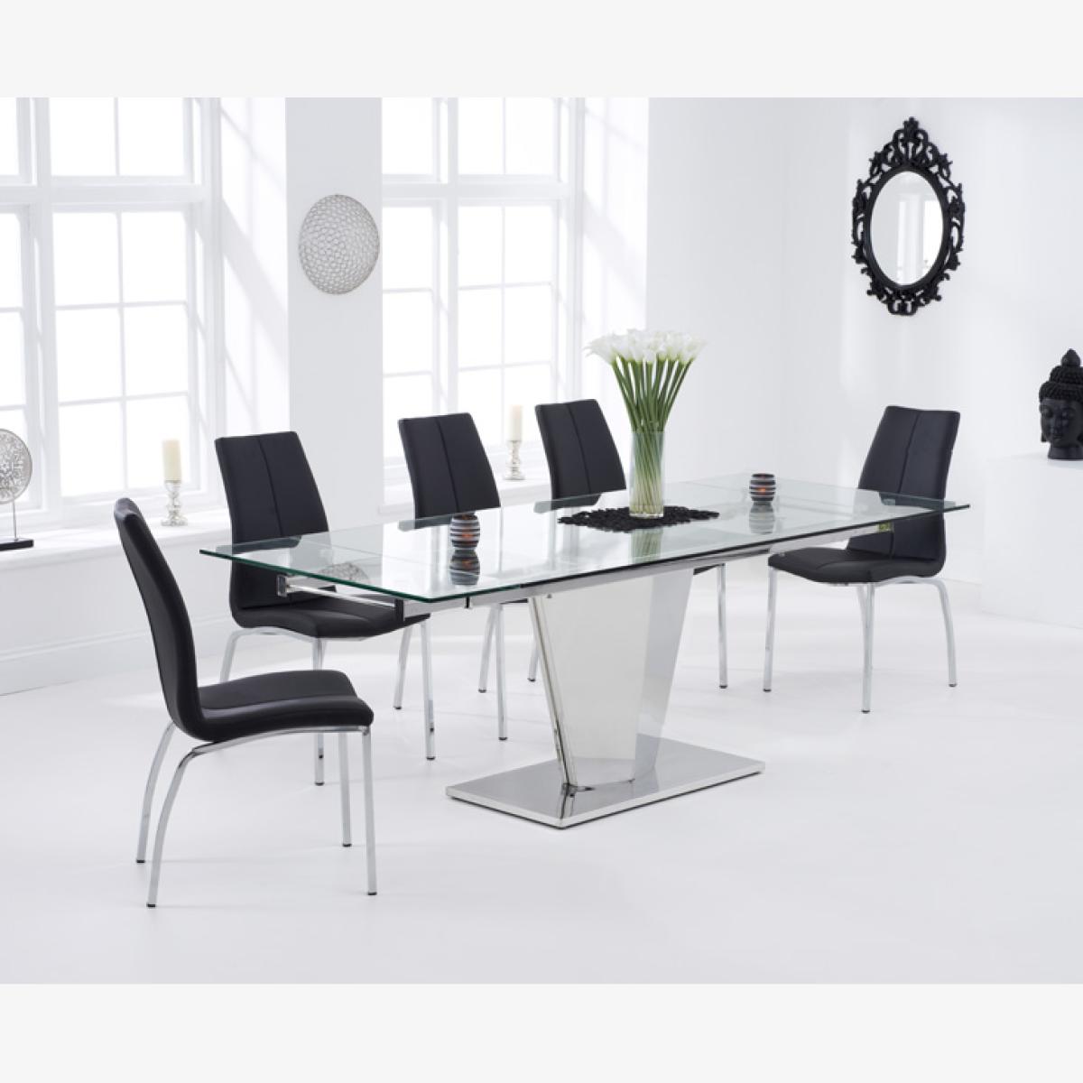 I love this glass dining table set for its sleek, modern aesthetic and versatile functionality. The extendable 160cm table makes it practical for everyday use while easily accommodating larger gatherings when needed. Its clean glass surface works well in contemporary, minimalist, or industrial interiors, creating an open and airy feel. The grey Cavello chairs add a sophisticated touch that pairs effortlessly with various colour schemes. Practical styling tips include layering with soft textiles such as a runner or placemats to add warmth, and pairing with bold accessories or vibrant tableware to create visual interest. It’s a great choice for stylish, functional dining spaces that embrace a modern aesthetic.