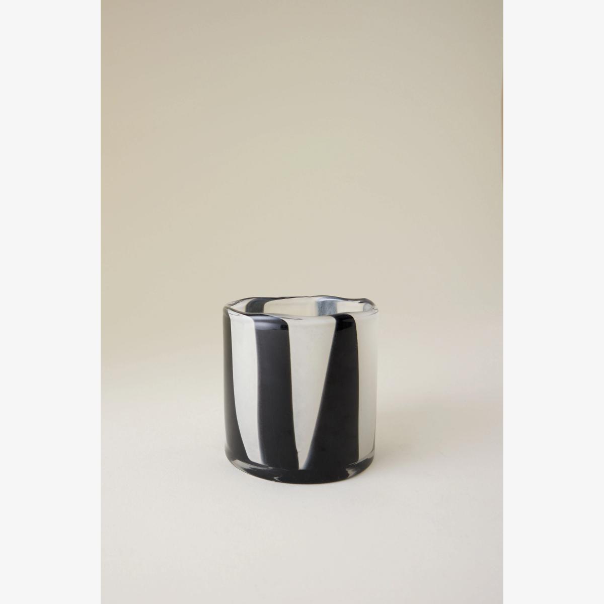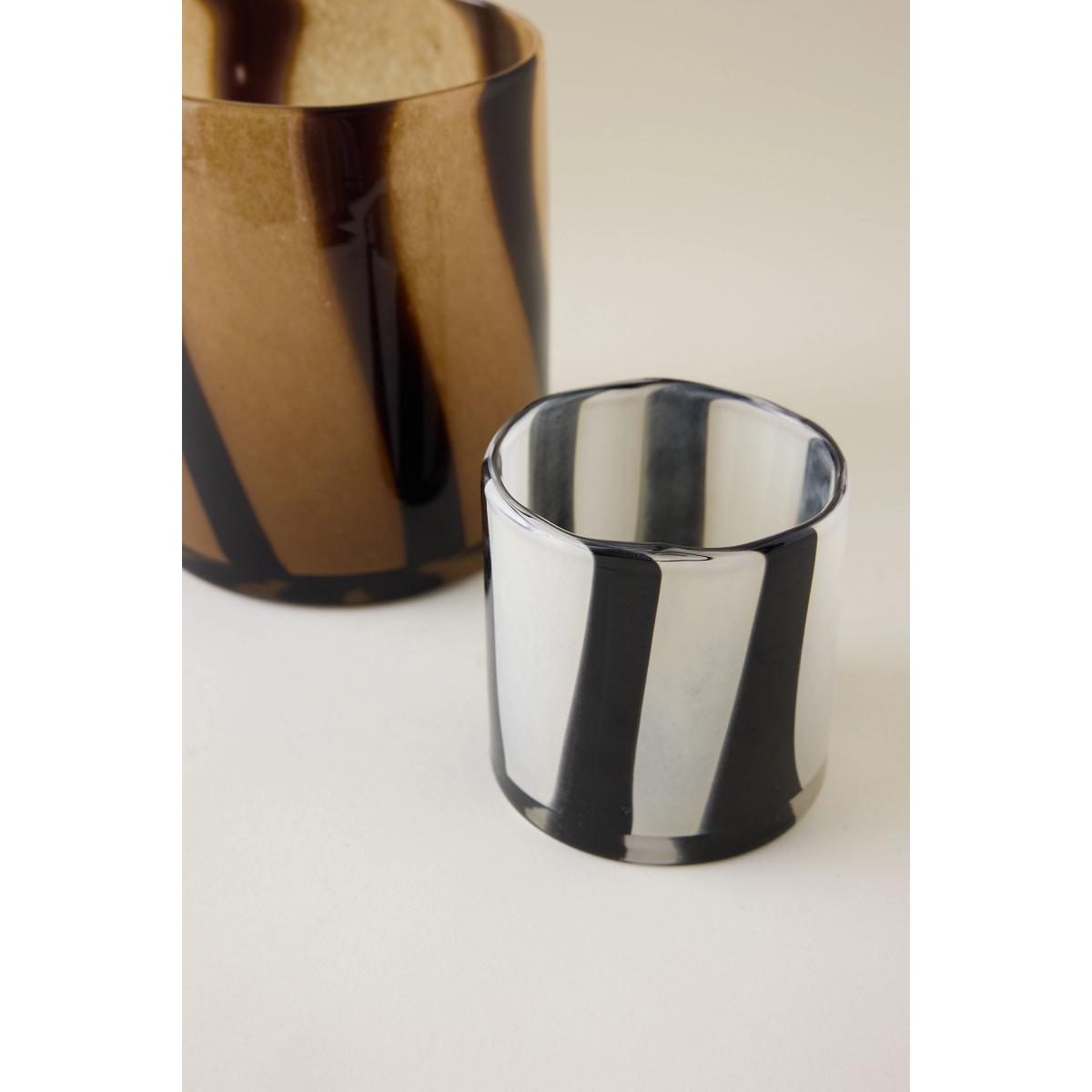 I love this little glass holder for its modern, minimalist design-its monochrome stripes add a subtle graphic touch that works well in both contemporary and eclectic interiors. It’s a versatile piece perfect for creating a cosy atmosphere on a side table, mantelpiece, or even as part of a centrepiece on a dining table. To style it effectively, try pairing it with soft textiles or contrasting textures, such as a wood or brass tray, to highlight its monochrome elegance. It also works well in grouped vignettes with other candles or decorative objects, adding height and visual interest without overwhelming the space. Its sleek shape makes it suitable for small spaces as well as larger feature areas-creating an effortless, curated look wherever placed.