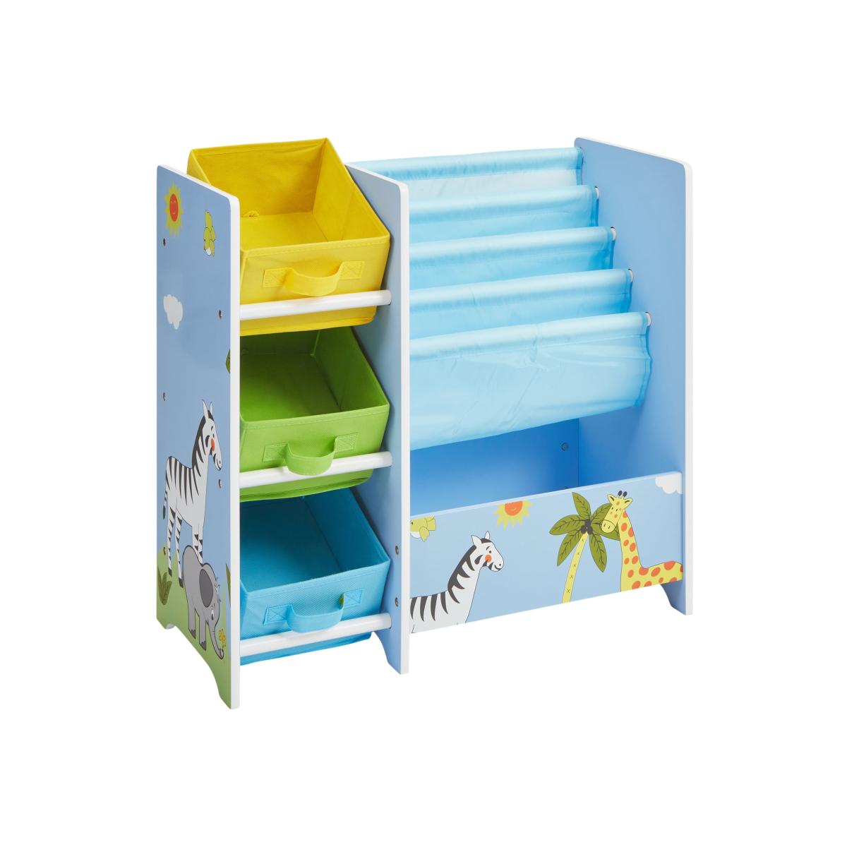 Liberty House Kids Safari Book Display With Three Fabric Storage Boxes Blue