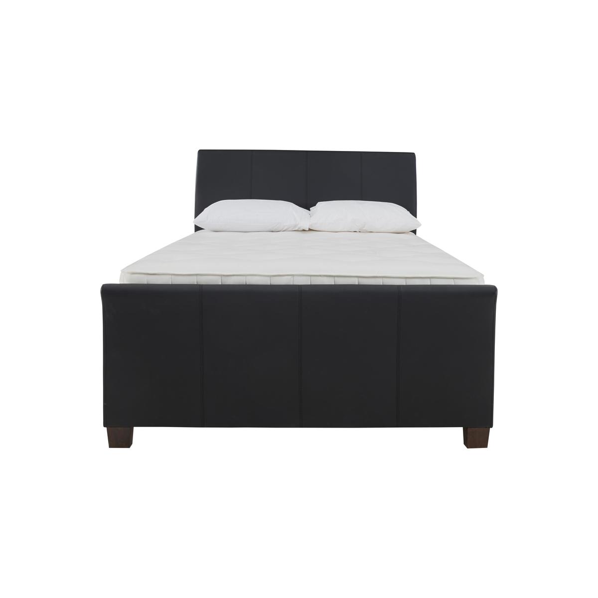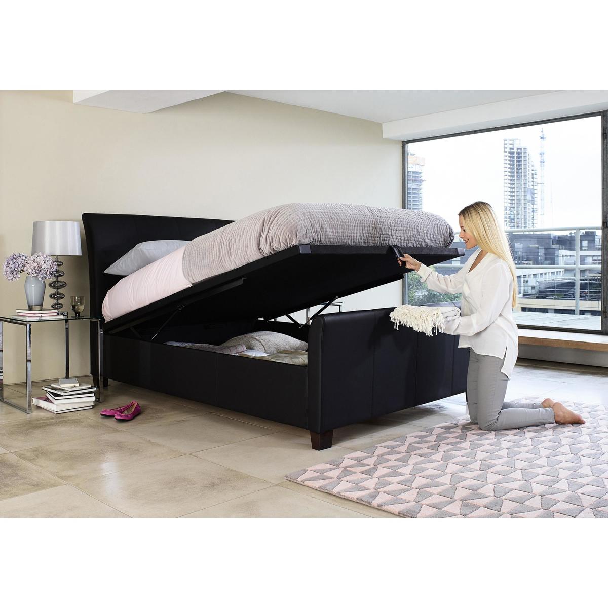 Headboard and footboard each come as one single piece. With the Liberty ottoman bed frame from Kaydian, you’ll enjoy the best of both worlds – a stylishly elegant upholstered bed frame and useful hidden storage. Simply raise the bed frame’s base – so easy thanks to the piston-assisted lift mechanism – and you’ll find an exceptionally large compartment that’s perfect for bedding, pillows and even clothing. But that’s just only one reason to choose this gorgeous bed frame. Contemporary in style, this bed has a beautiful sleigh-style curved headboard and rounded footboard. It’s upholstered in a fashionable leather-like fabric that gives the entire bed frame an altogether luxurious feel. The platform bed base is designed to accommodate any standard size mattress, and is ventilated to help keep you cool and comfortable at night. Available in a choice of upholstery colours, the Kaydian Liberty bed frame with ottoman storage can transform any bedroom into a haven of comfortable luxury. Mattress available separately