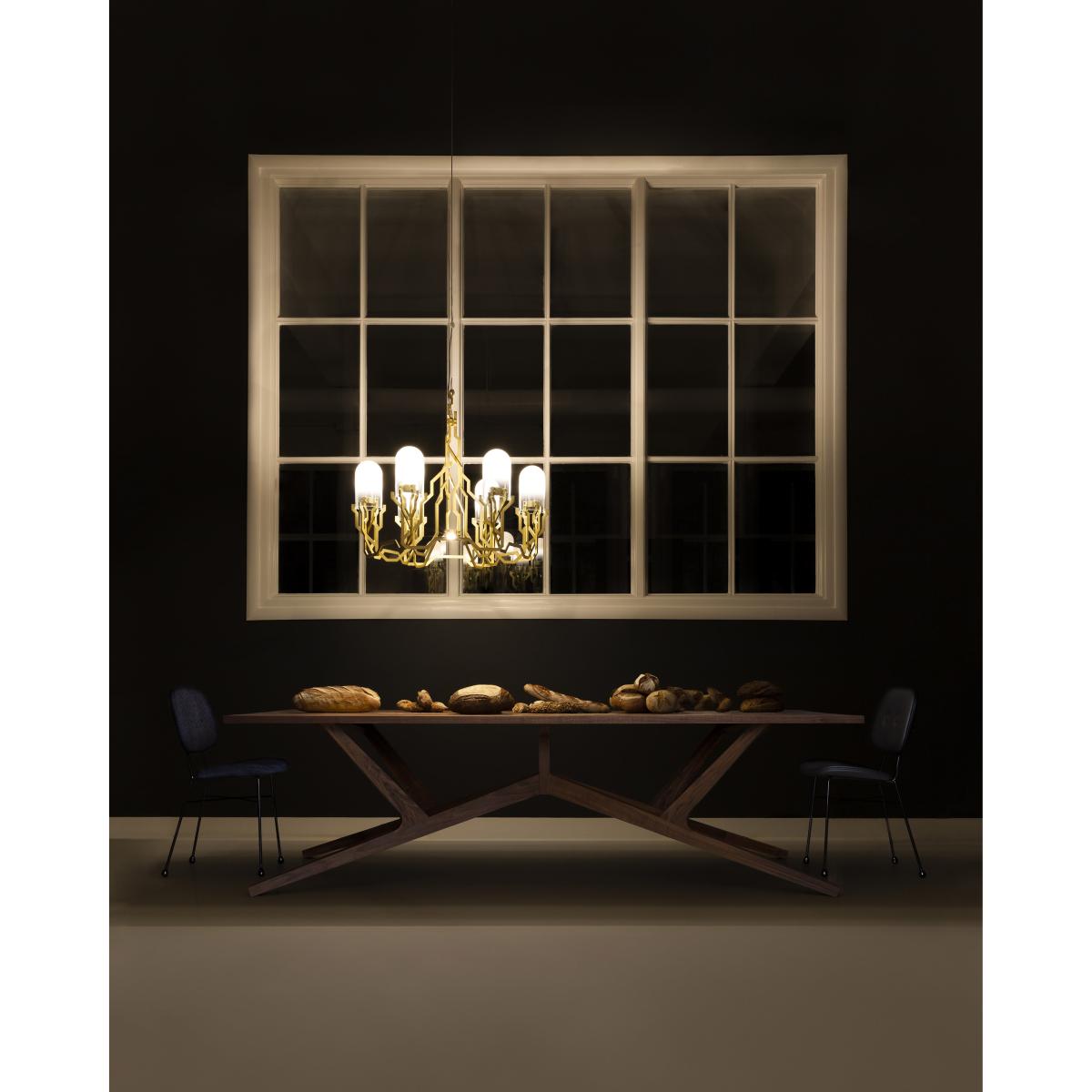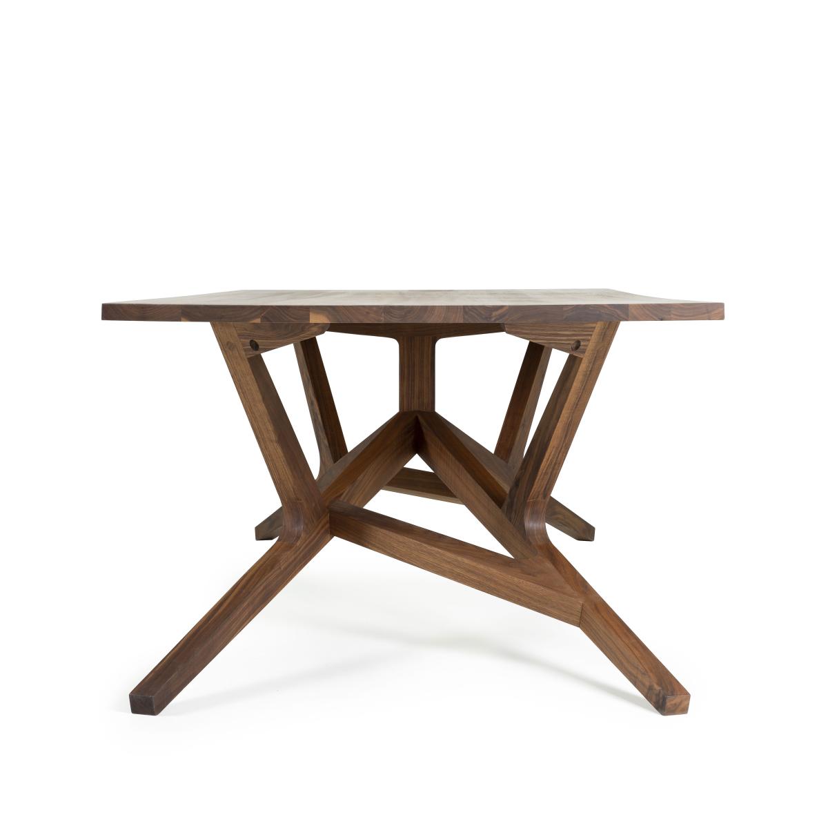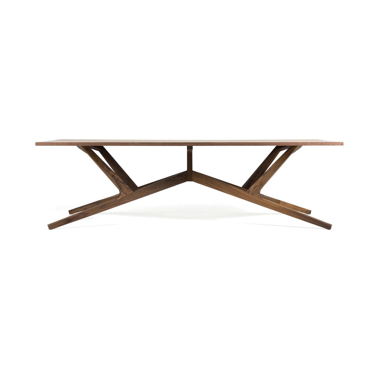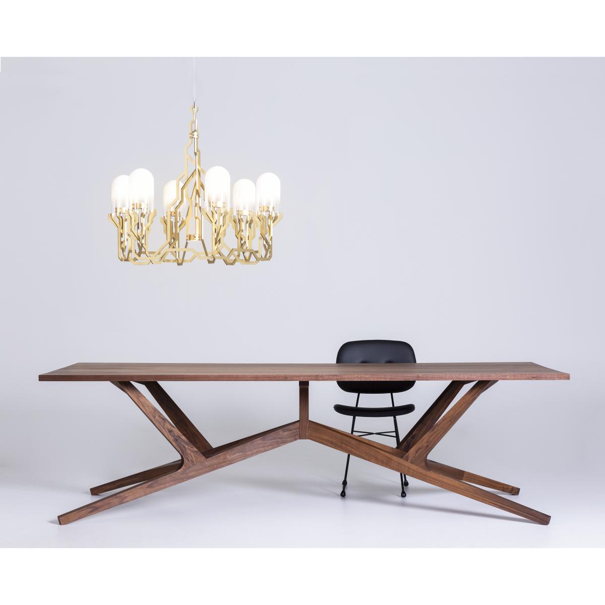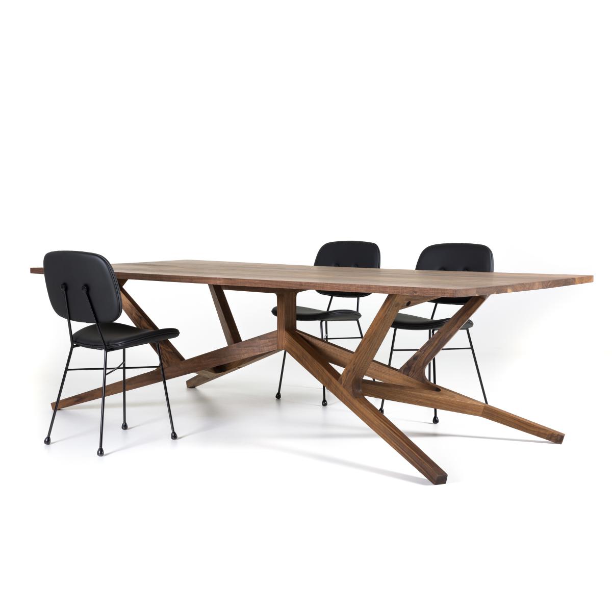 The Liberty table is an extraordinary combination of creative genius and expertise in cabinet-making. The provocative contemporary artist and sculptor, Joep Van Lieshout is offering a table with masterful proportions, the sculptural base of which is the result of incredible woodwork. With a neo-rustic style, Joep Van Lieshout gives us a modern and luxurious version of the traditional, robust and convivial wooden country table. The Liberty table aims to reconnect man to raw and natural materials. Made completely from solid walnut, Liberty is a table with a modern but timeless design. The perfect tension of the angular lines of the base grant this table a strong sculptural presence. A real technical feat, Liberty's manufacturing requires exceptional craft expertise combined with cutting-edge technologies. Like a woodwork framework, the Liberty table presents a direct and immediate construction that gives an idea of its manufacturing process. The different parts are assembled in an evident way. Every join, each element seems to be linked to the next. This exceptional piece catches your attention like no other. The Liberty table is a reflection of the ongoing dialogue between craftsman and designer, feasibility and imagination, know-how and creation.