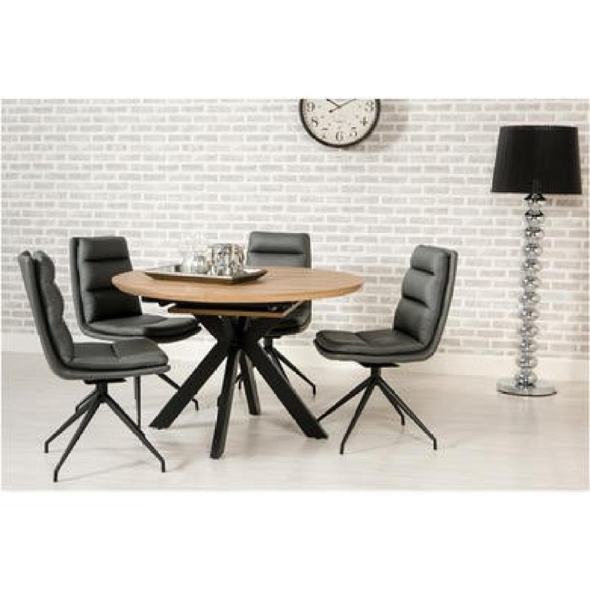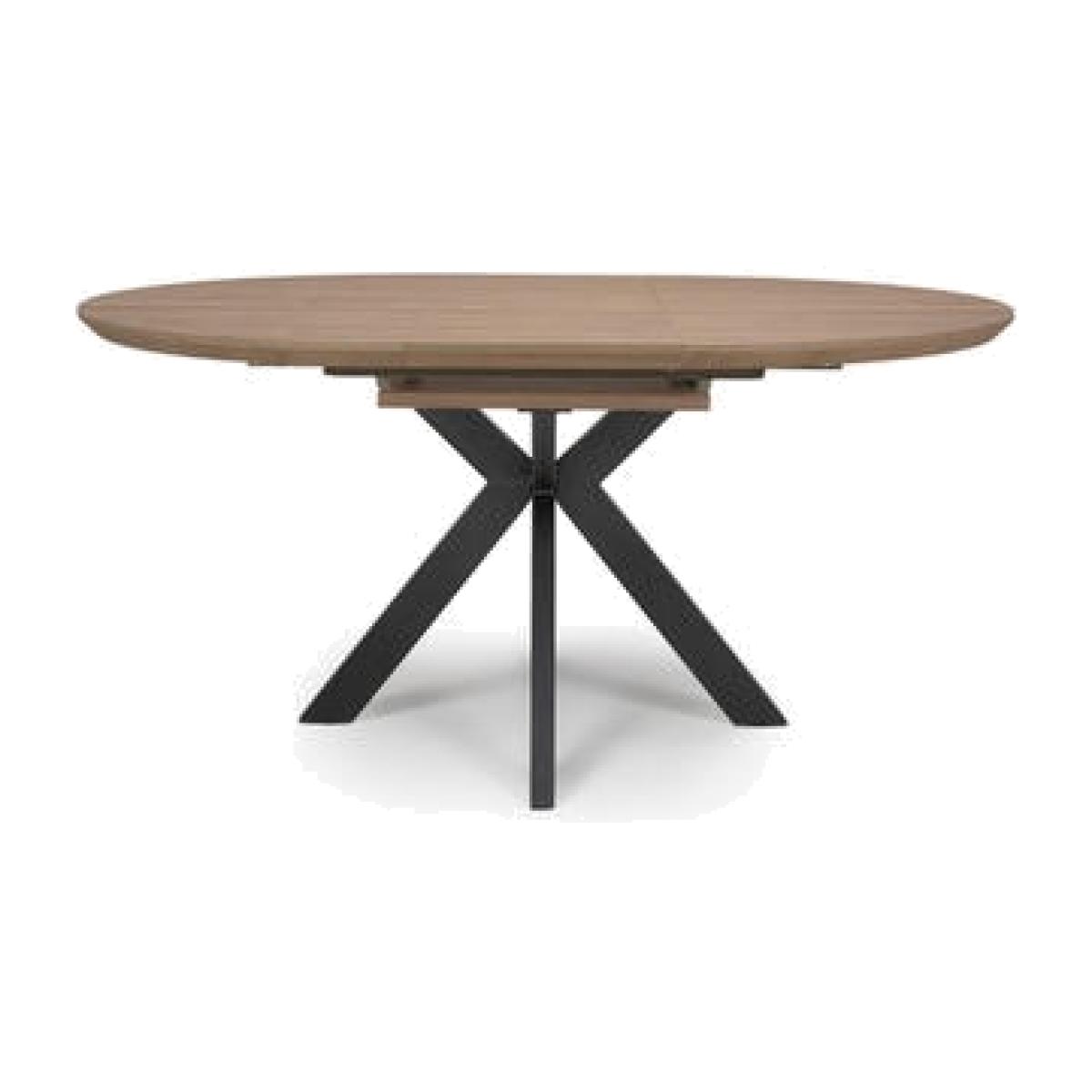 Dimensions W120x H76x D120 cm. This stylish and industrial extending dining table will add a contemporary touch to any dining room. This design easily coordinates with various modern home decors and dining chairs giving you the perfect place to comfortably entertain 4-6 guests while making an eye catching statement. Features. Industrial and contemporary design. Beautifully crafted metal frame. Extends 120cm to 160cm. Heat scratch and stain resistant Easy to clean Assembly required..